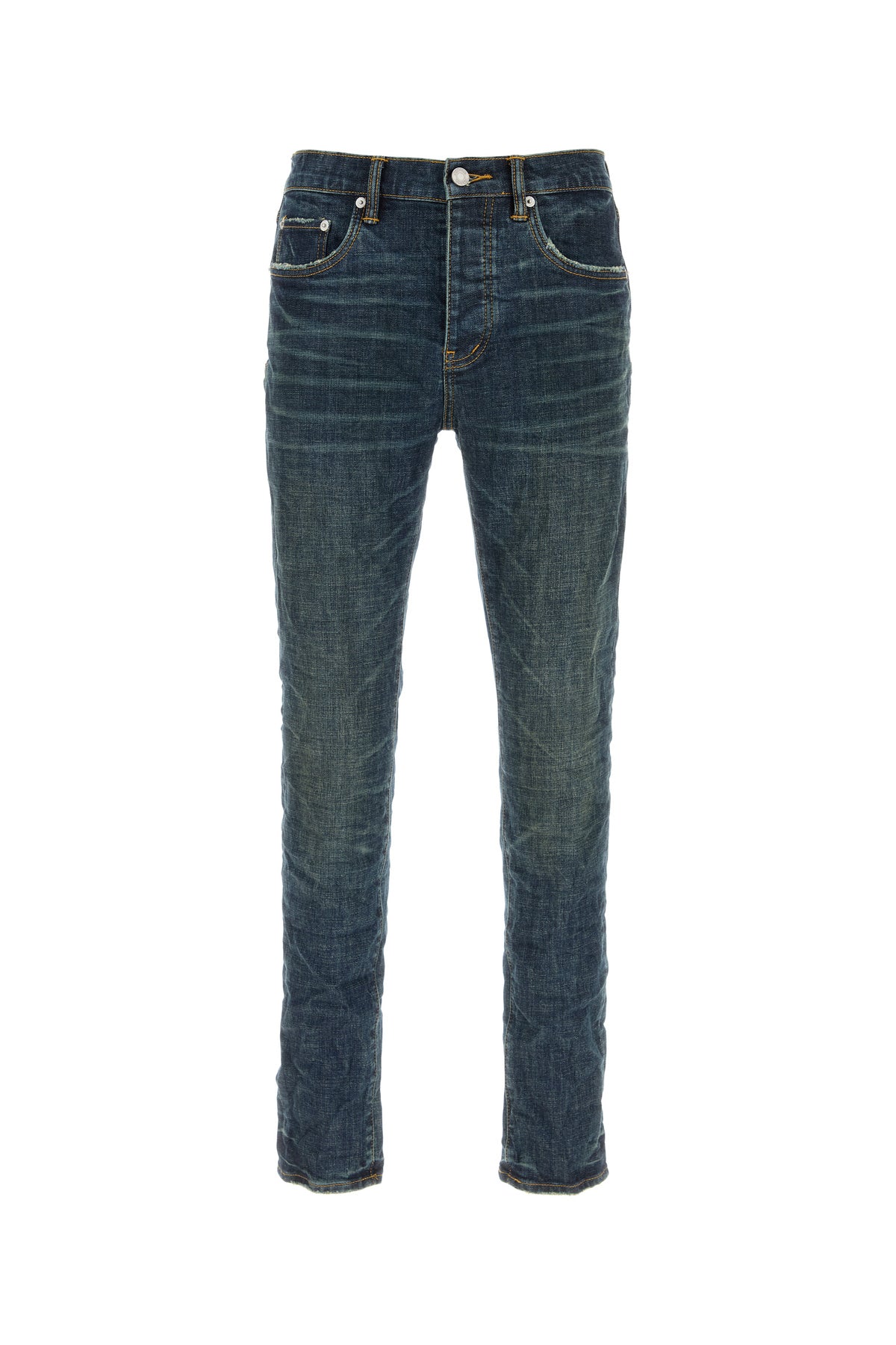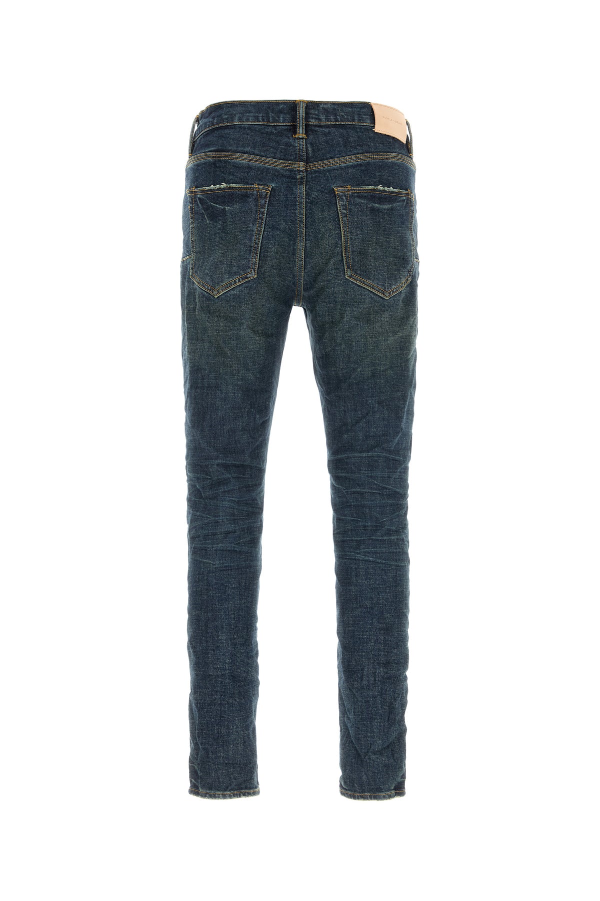 Jeans realized in stonewashed and slightly distressed stretch cotton enriched by contrasting logoed label at the back.