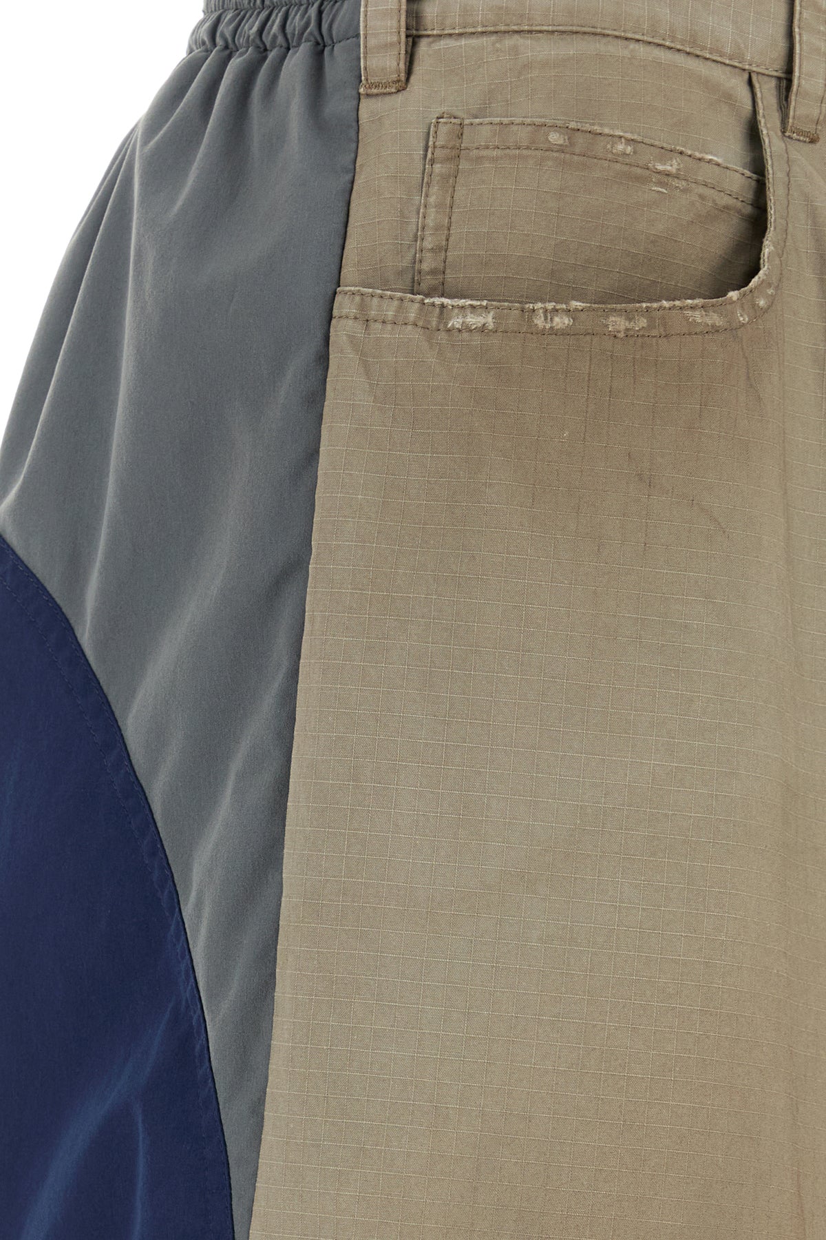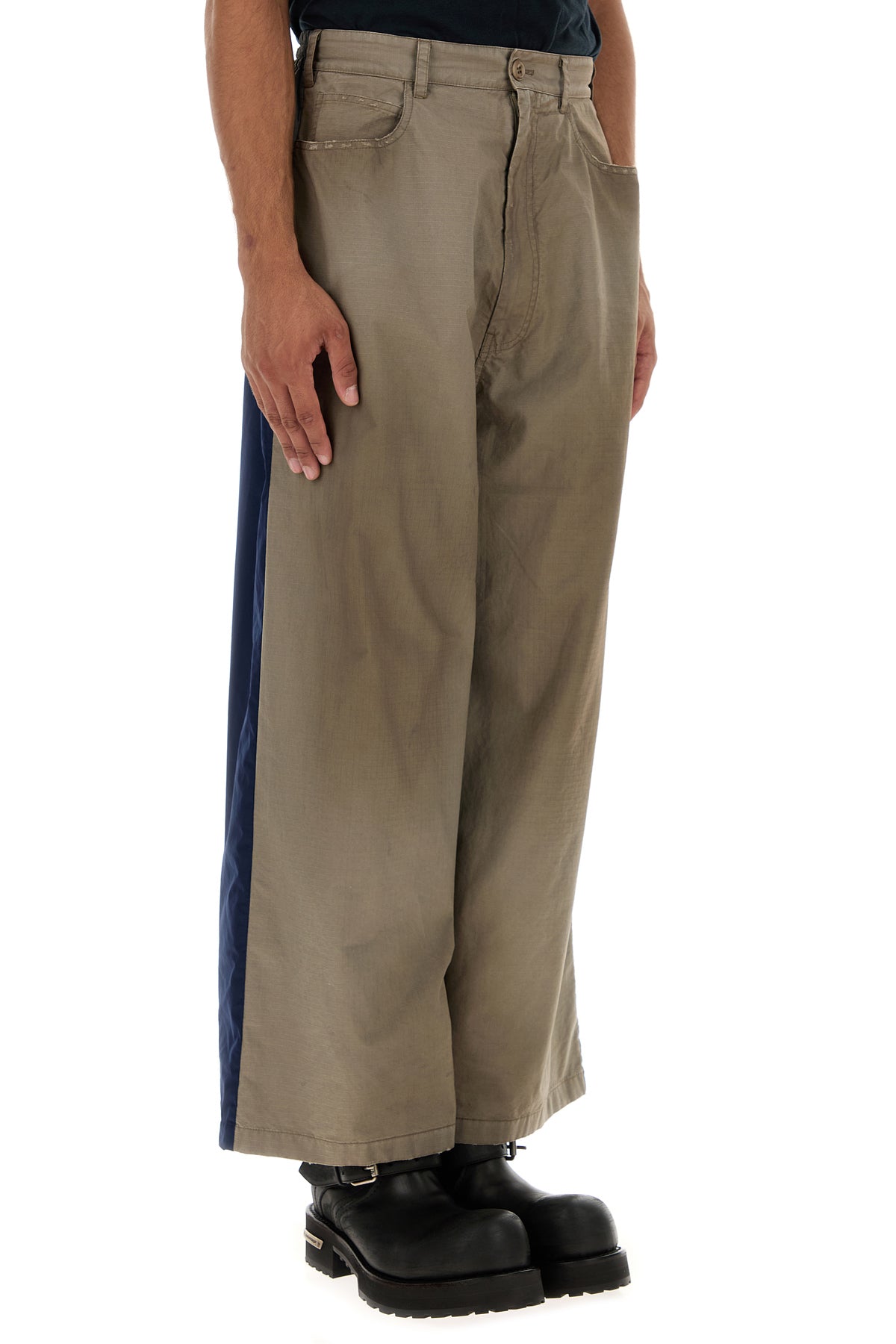 Pant realized in slightly distressed effect cotton and polyester characterized by belt loops at the waist.