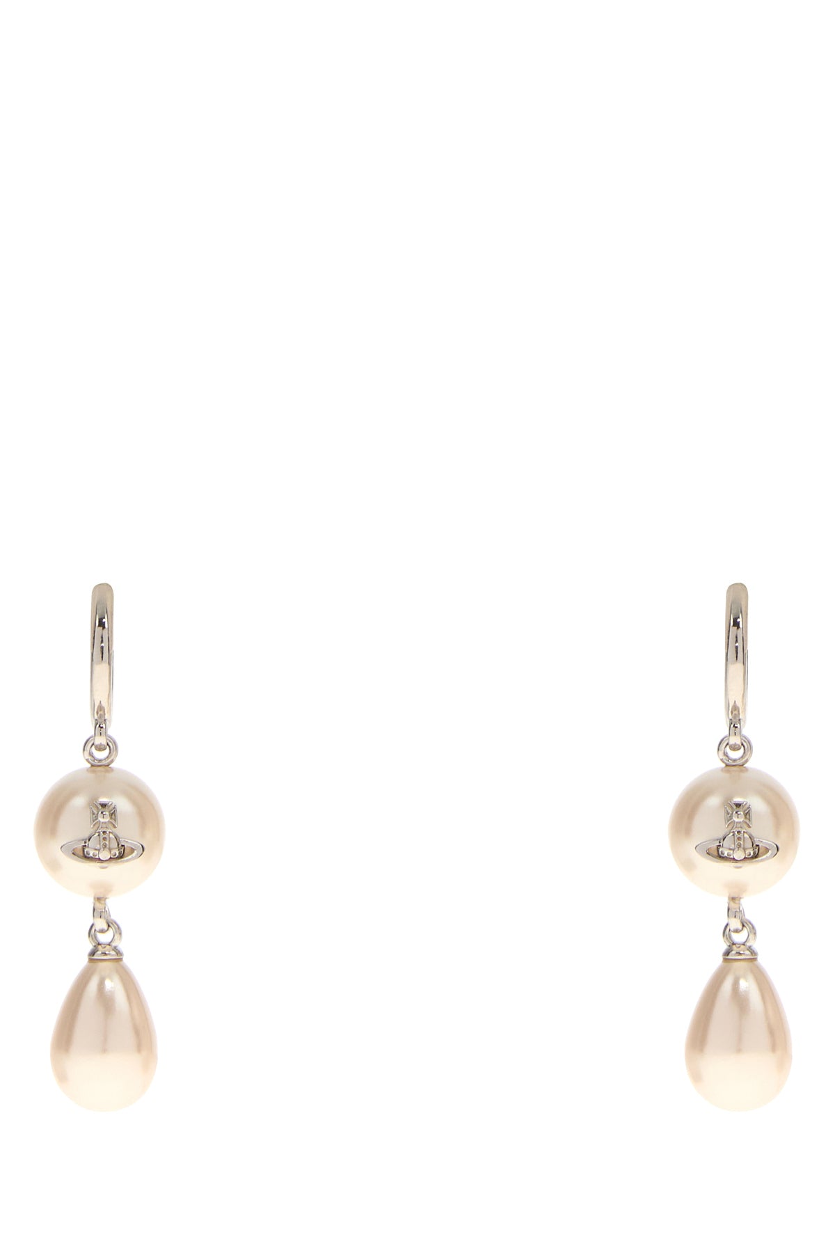 Earrings realized in silver-tone pleated metal and pearls enriched by Orb metal detail.