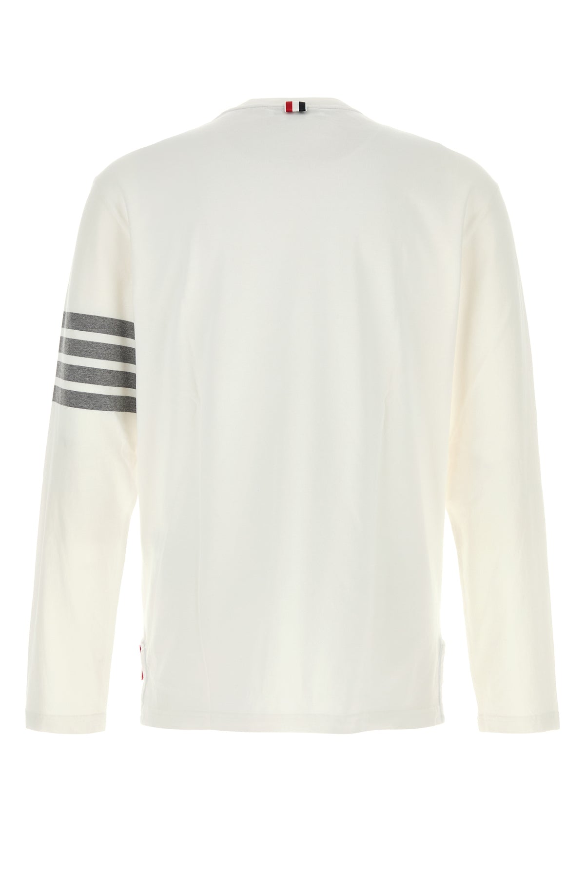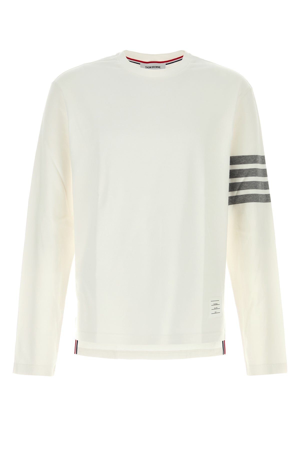 Long-sleeves t-shirt realized in pure cotton characterized by striped embroidery on the sleeve enriched by contrasting logoed label on the hemline and iconic tricolor label at the back.