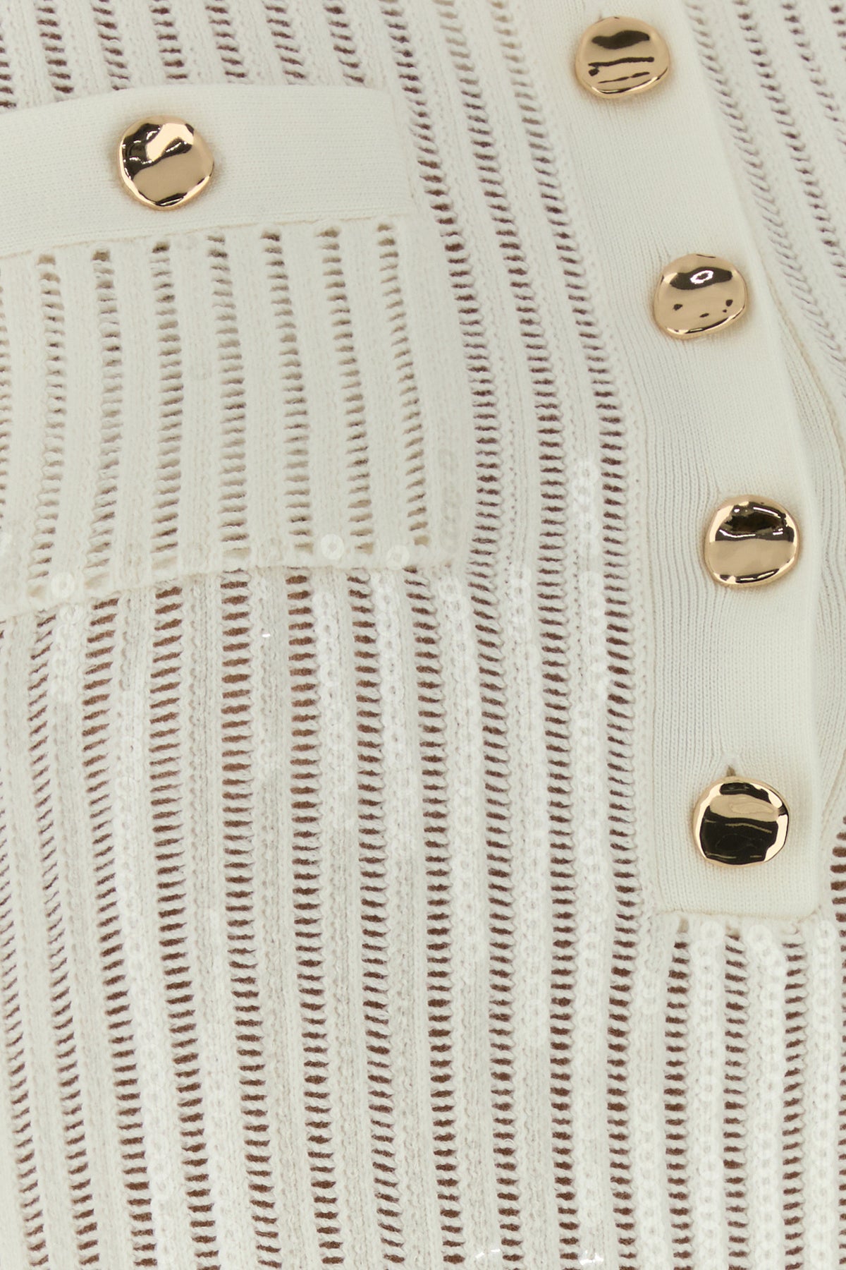 Mini polo dress realized in cotton and cashmere crochet enriched by sequins on the entire surface.