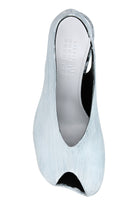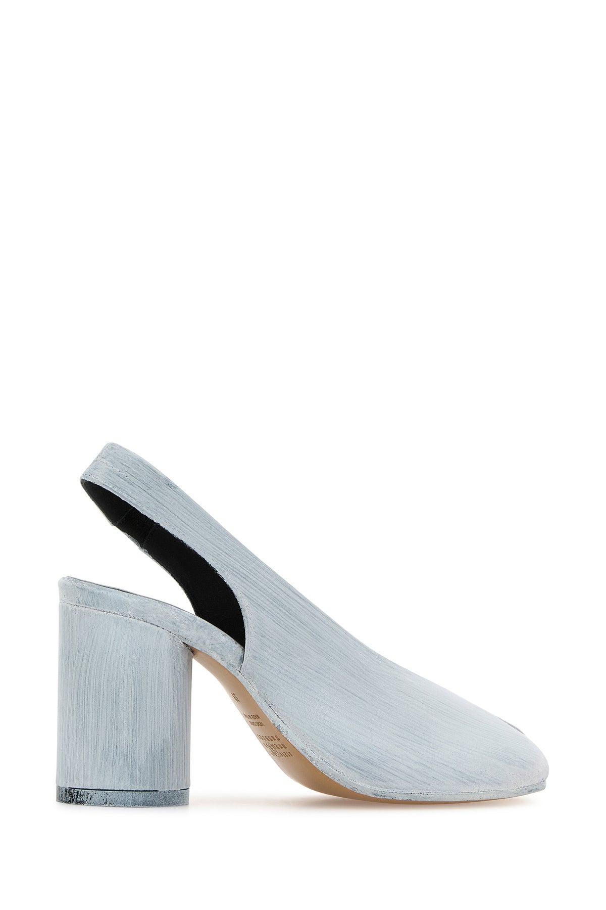 Slingback realized in painted effect leather characterized by iconic stitching at the back.