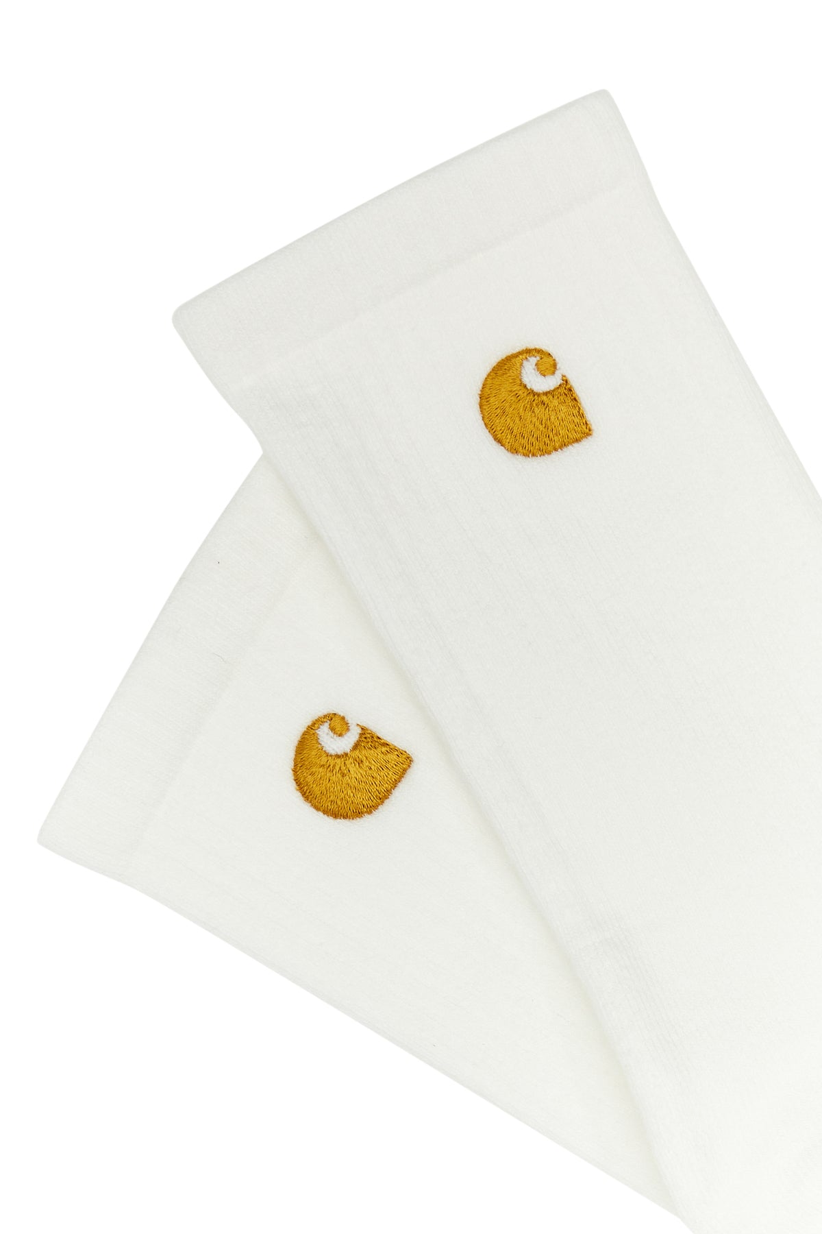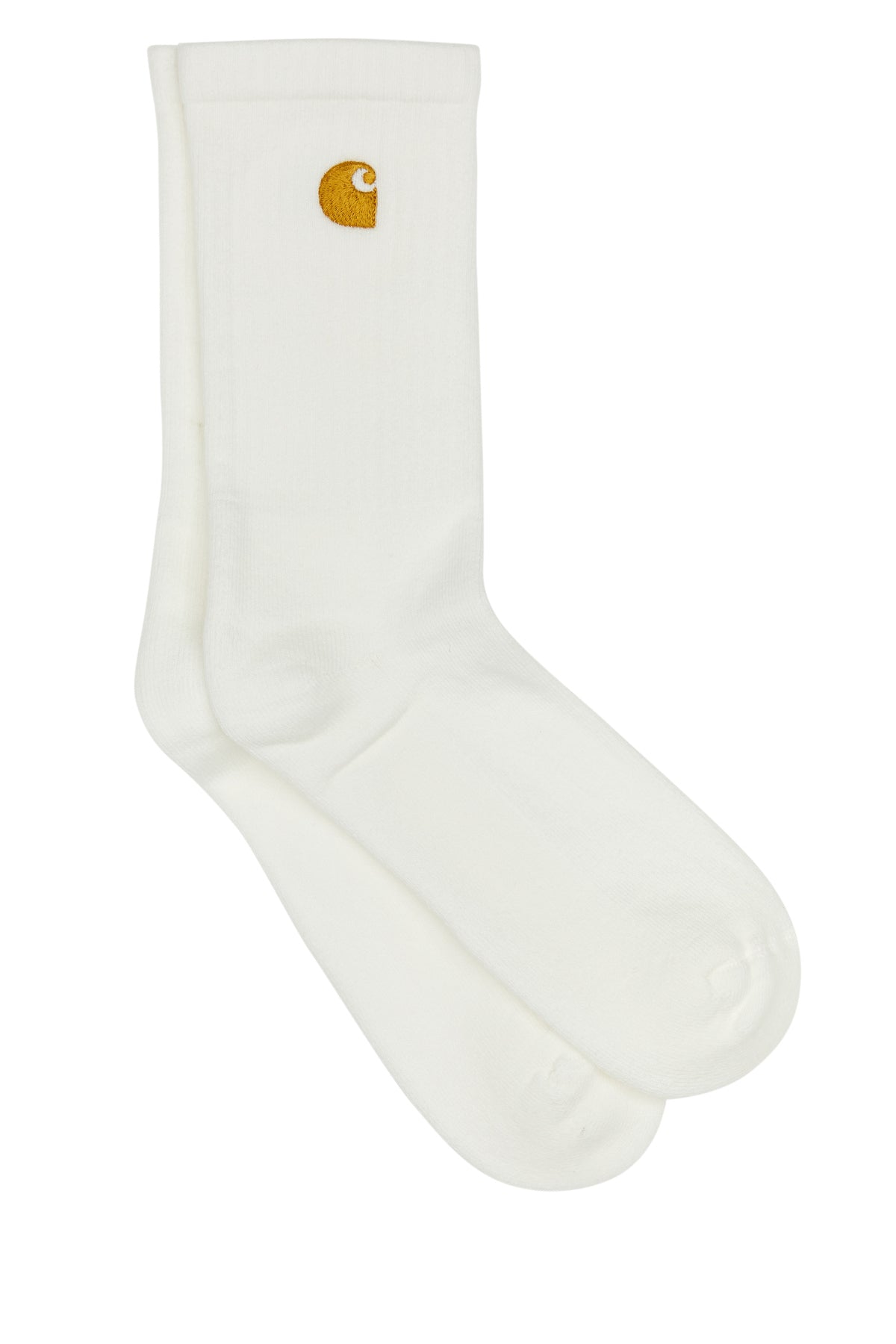 Socks realized in stretch cotton blend characterized by contrasting logoed embroidery on the side.