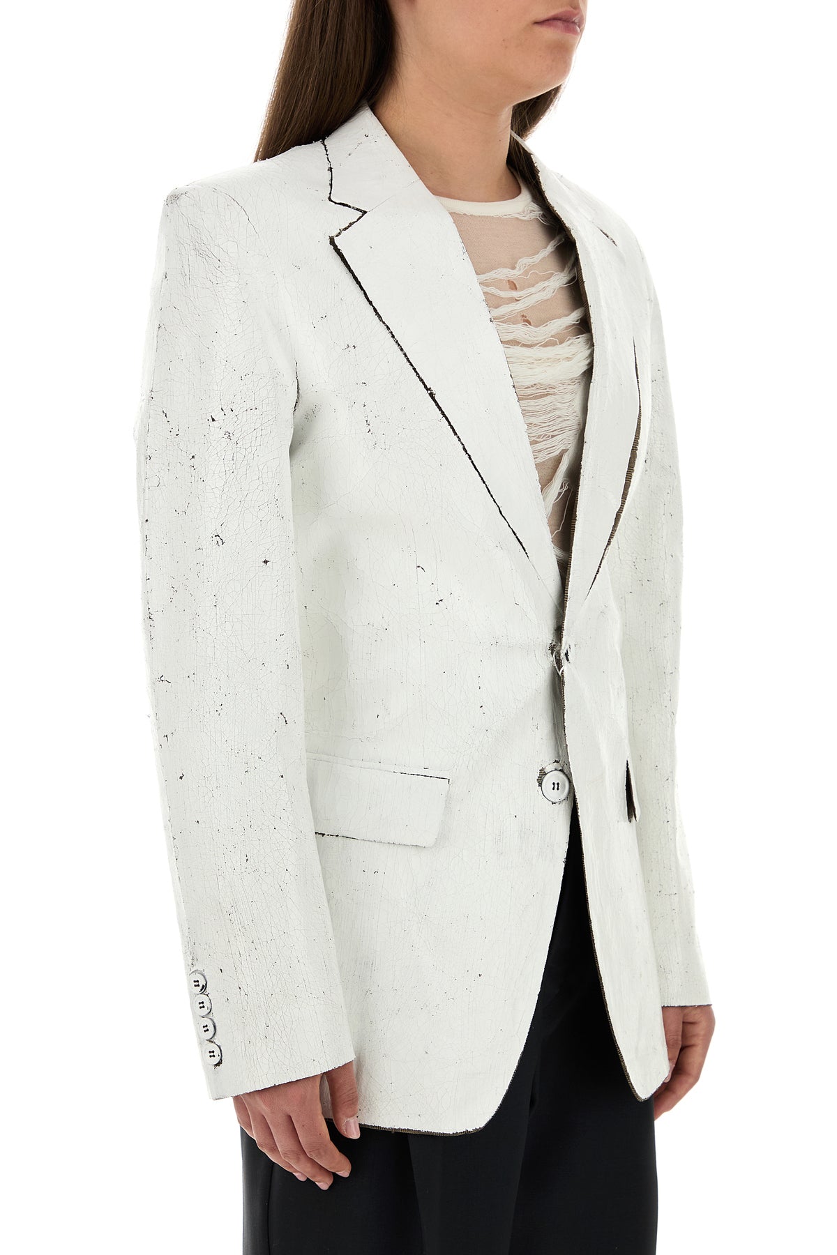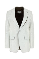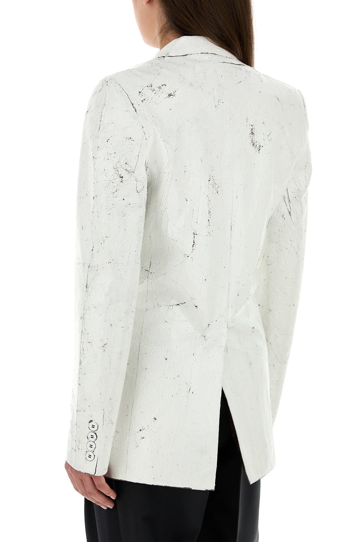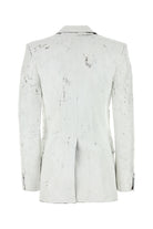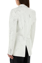 Blazer realized in stretch polyester blend characterized by painted effect on the entire surface.