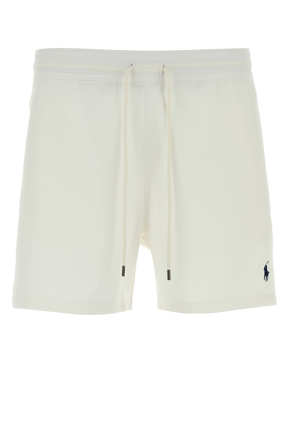 Swimming shorts realized in stretch polyester characterized by contrasting iconic embroidered logo at the front enriched by logoed label at the back.
