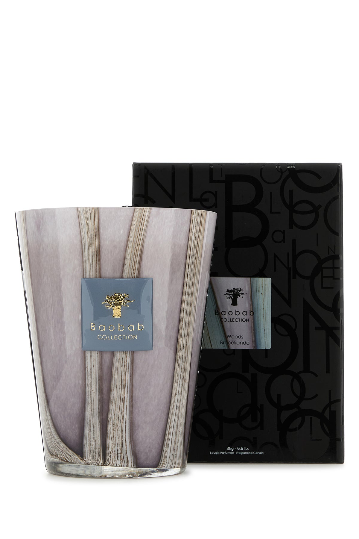 The glass of the Brocéliande scented candle, with its vertical lines evoking tree trunks reaching towards the sky, features a colour scheme that shifts between grey and parma yellow, revealing infinite sophistication.