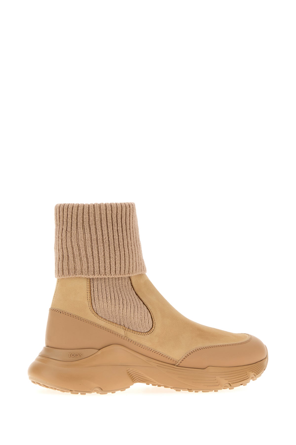 Ankle boots realized in suede with fabric inserts at the top characterized by logo in relief on the side.