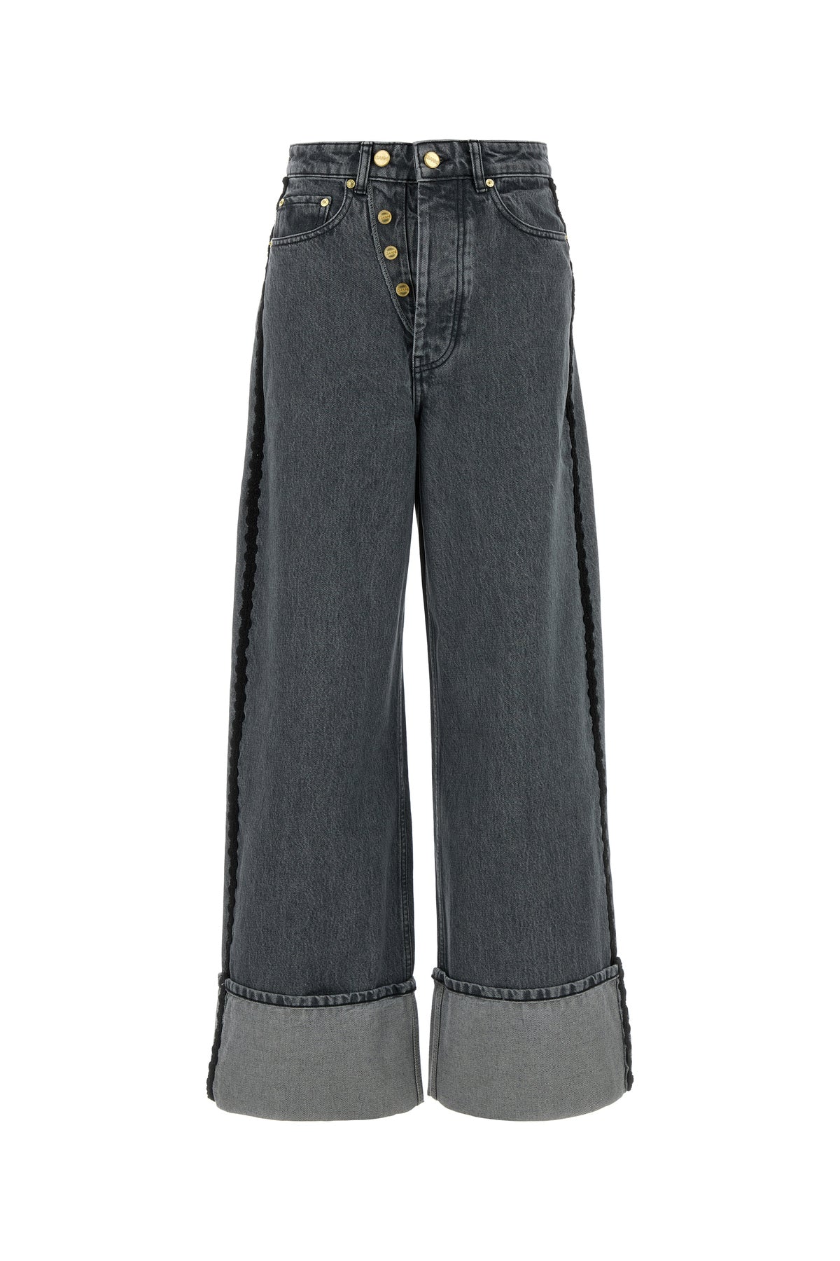 Baggy jeans realized in stonewashed pure organic cotton denim enriched by lace inserts on the sides.
