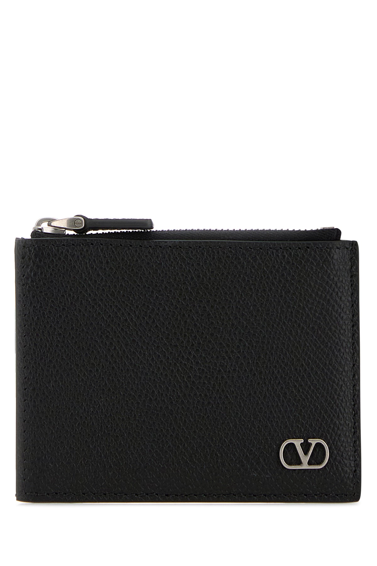 Coin pocket realized in grained leather enriched by VLogo Signature metal detail at the front.