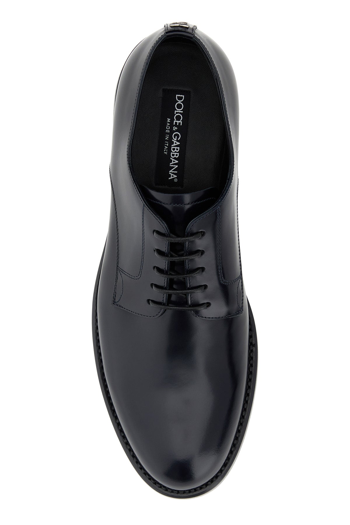 Lace-up shoes realized in polished finish calf leather enriched by DG metal detail at the back.