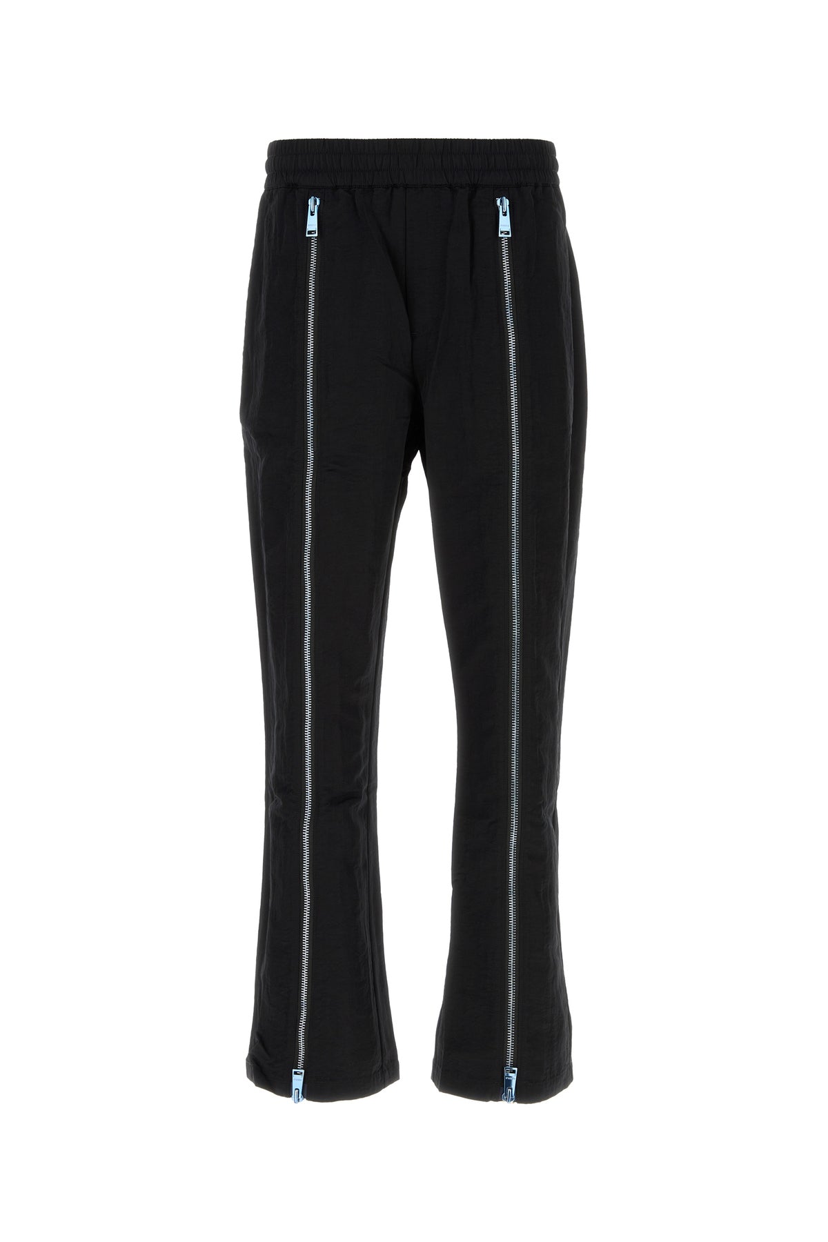 Pant realized in nylon enriched by zipped deep slits at the front.