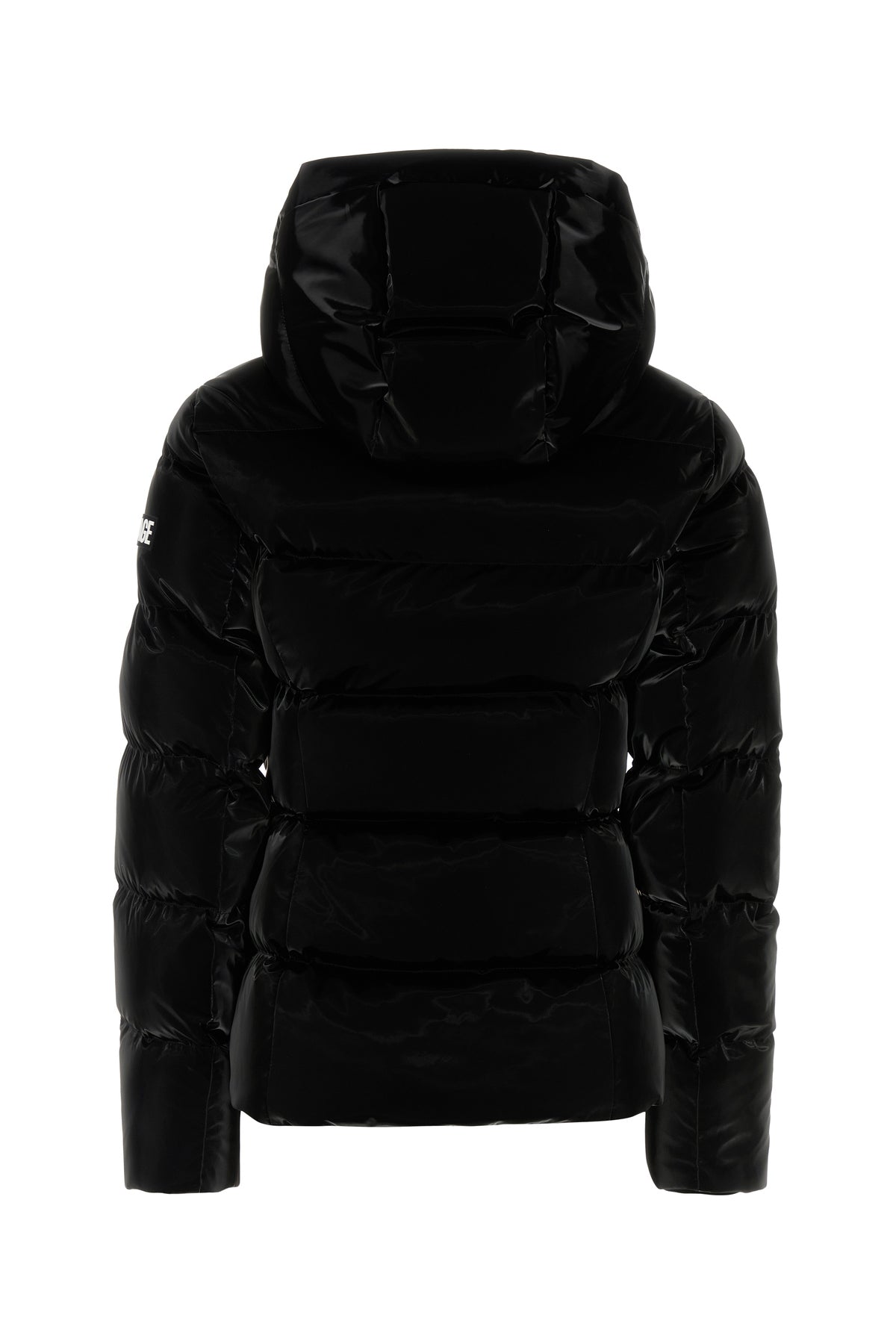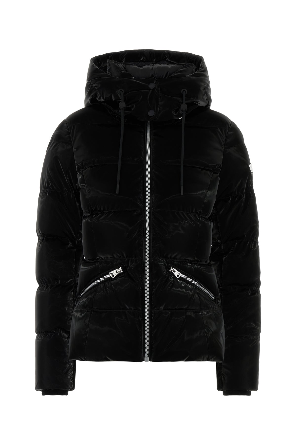 Down jacket realized in quilted polyurethane enriched by logoed patch on the sleeve.