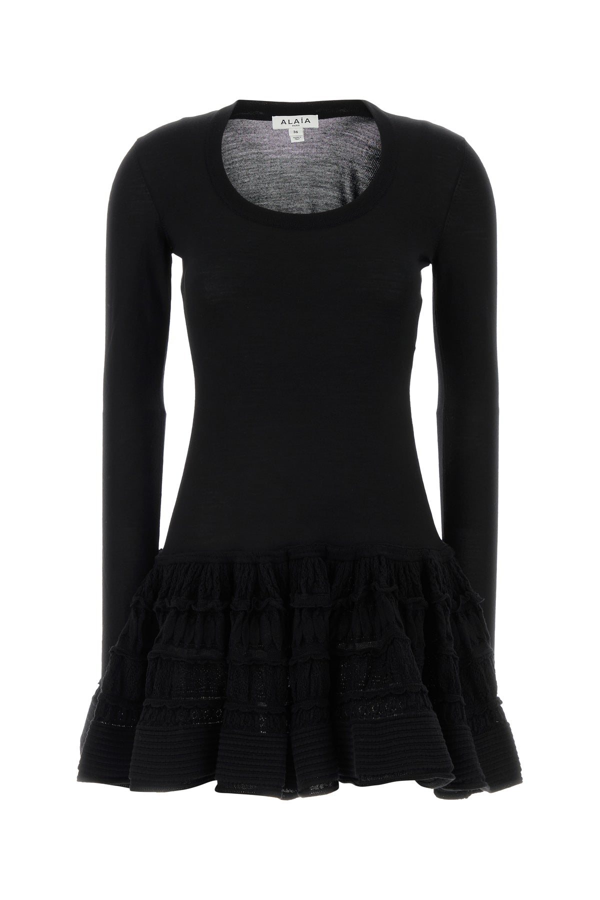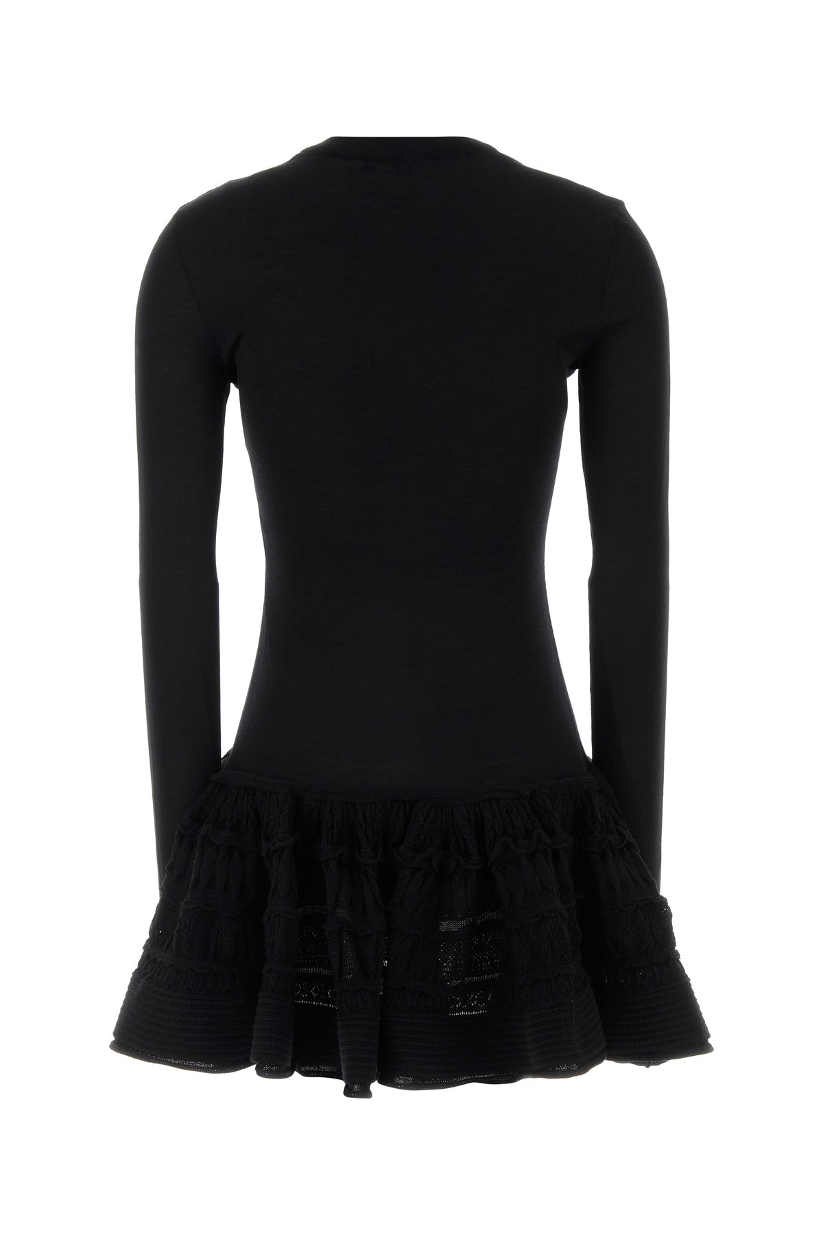 Mini dress realized in stretch wool blend characterized by flounces on the hemline.