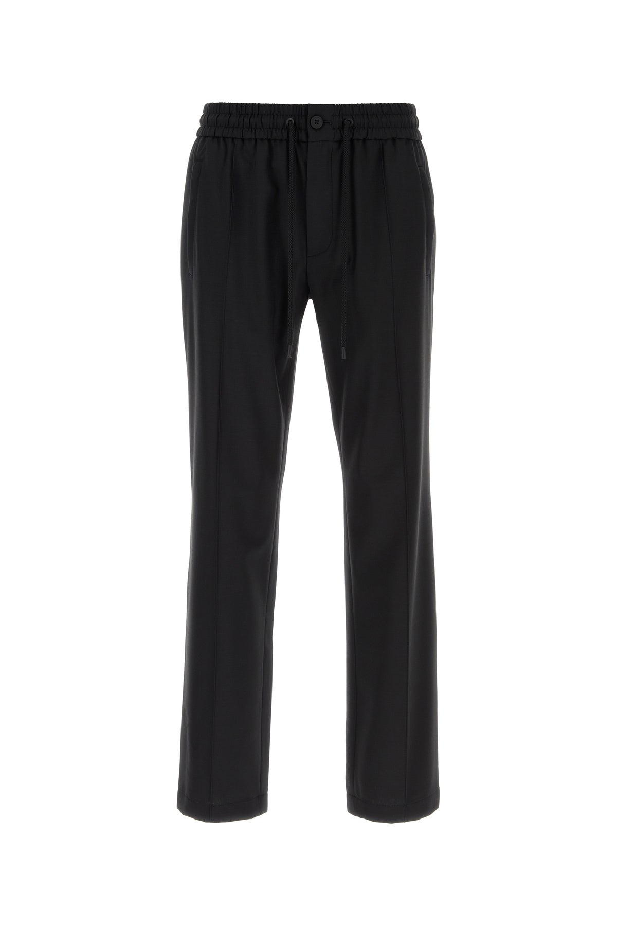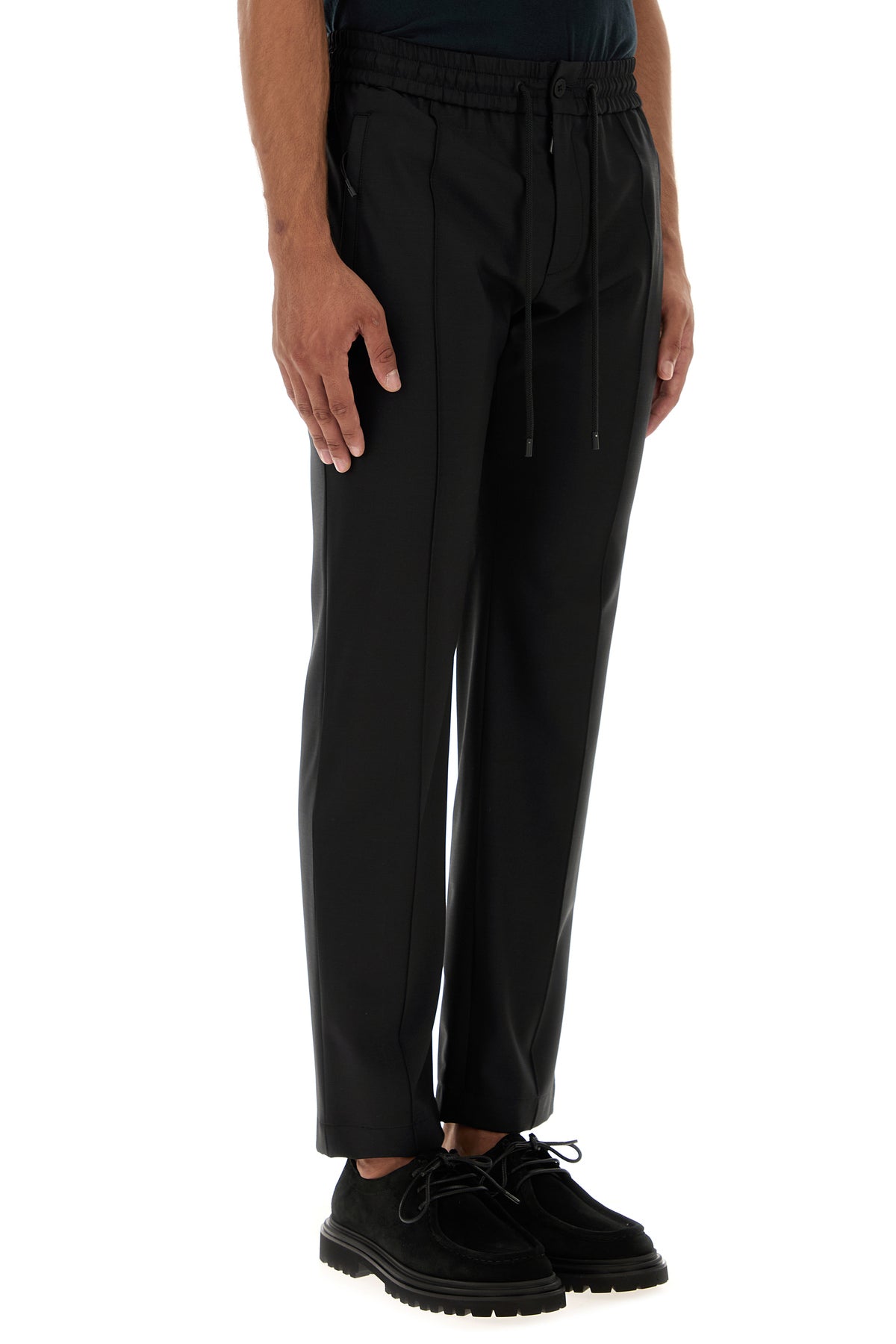 Pant realized in stretch wool blend characterized by central ironed pleats.