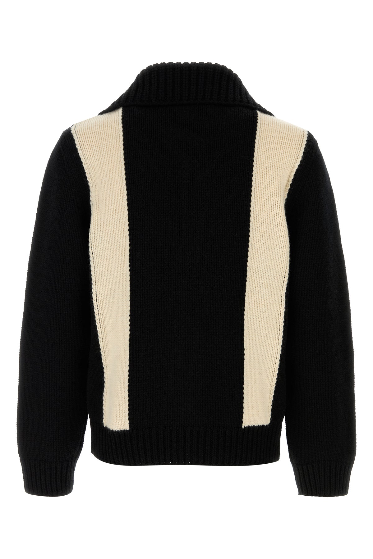 Cardigan realized in pure virgin wool characterized by contrasting logoed embroidery at the front.