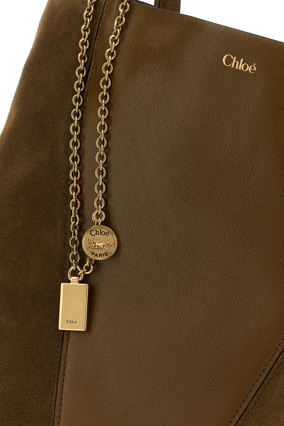Brown leather and suede Chloè Spin shopping bag