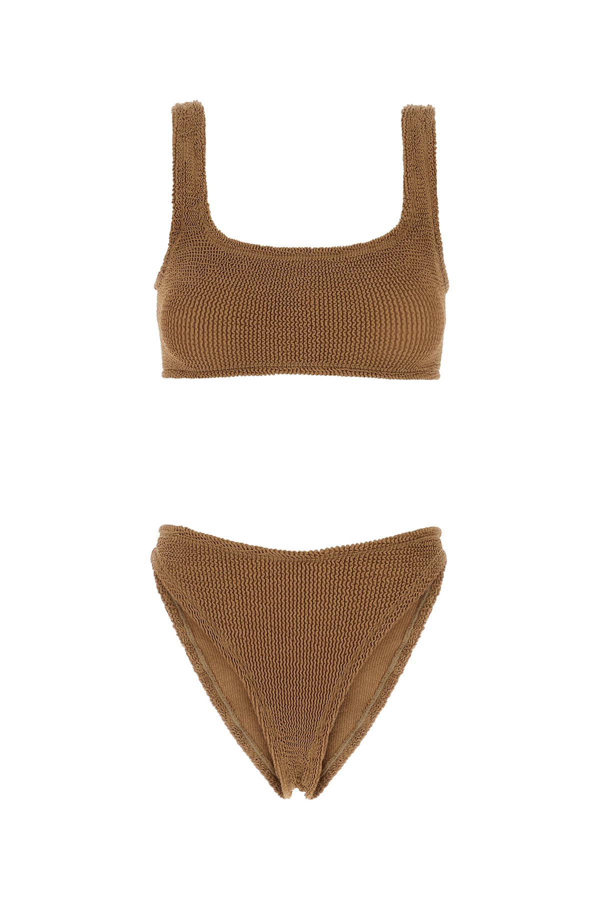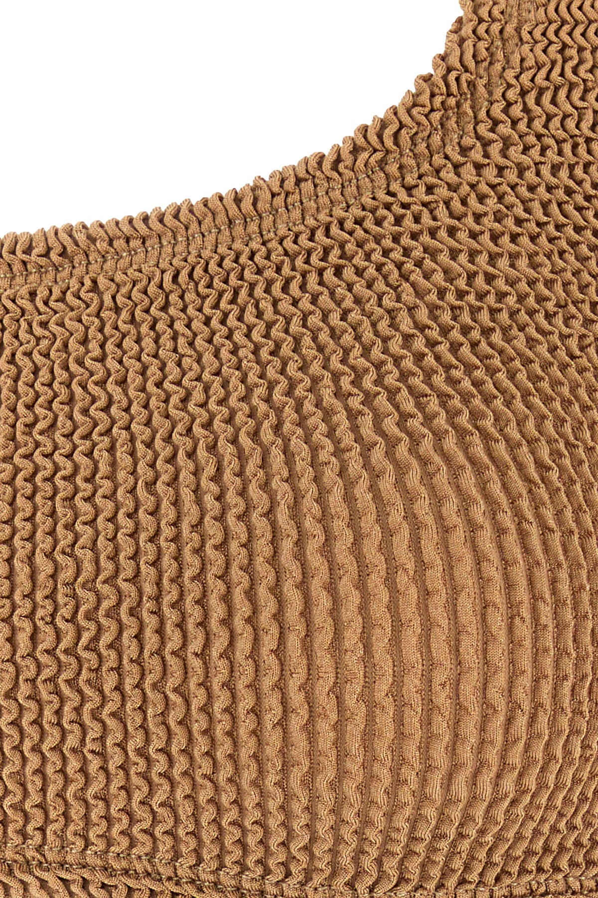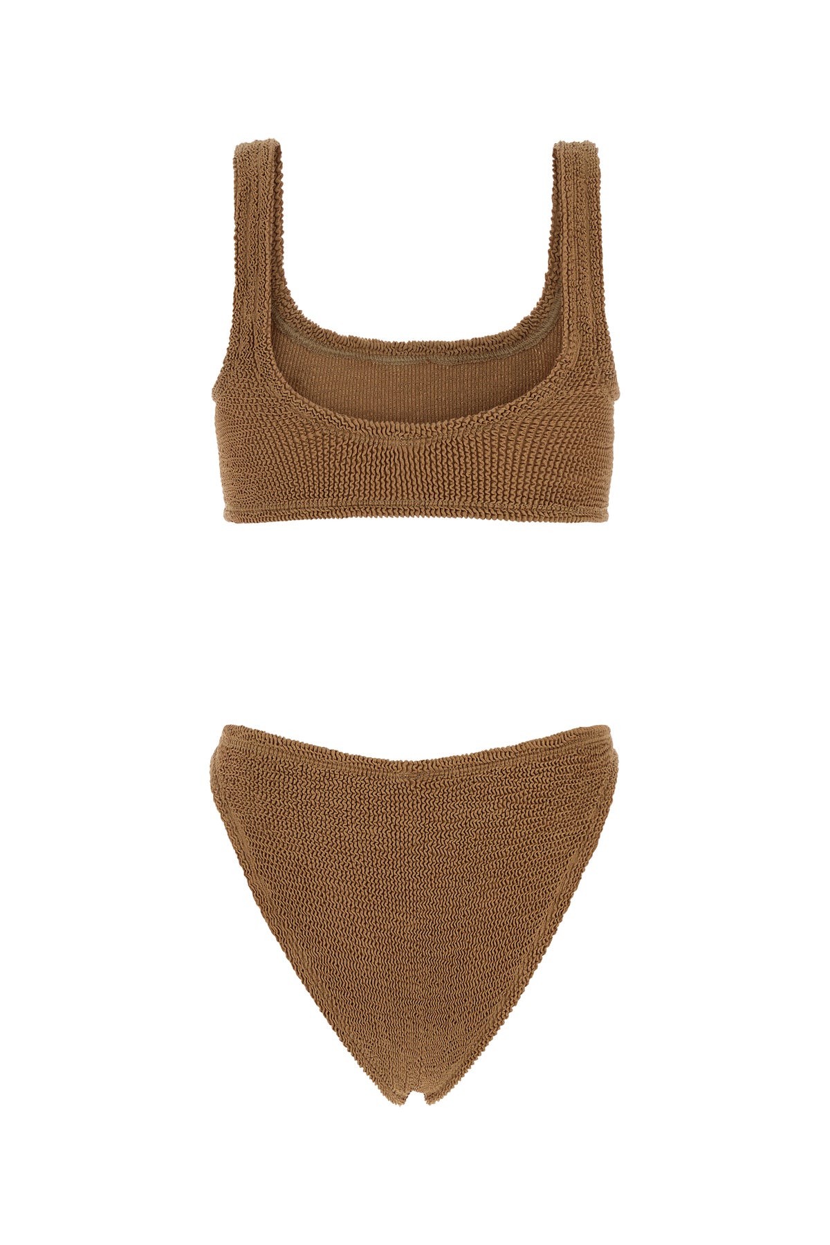 Bikini realized in embossed stretch nylon characterized by bandeau bikini top.