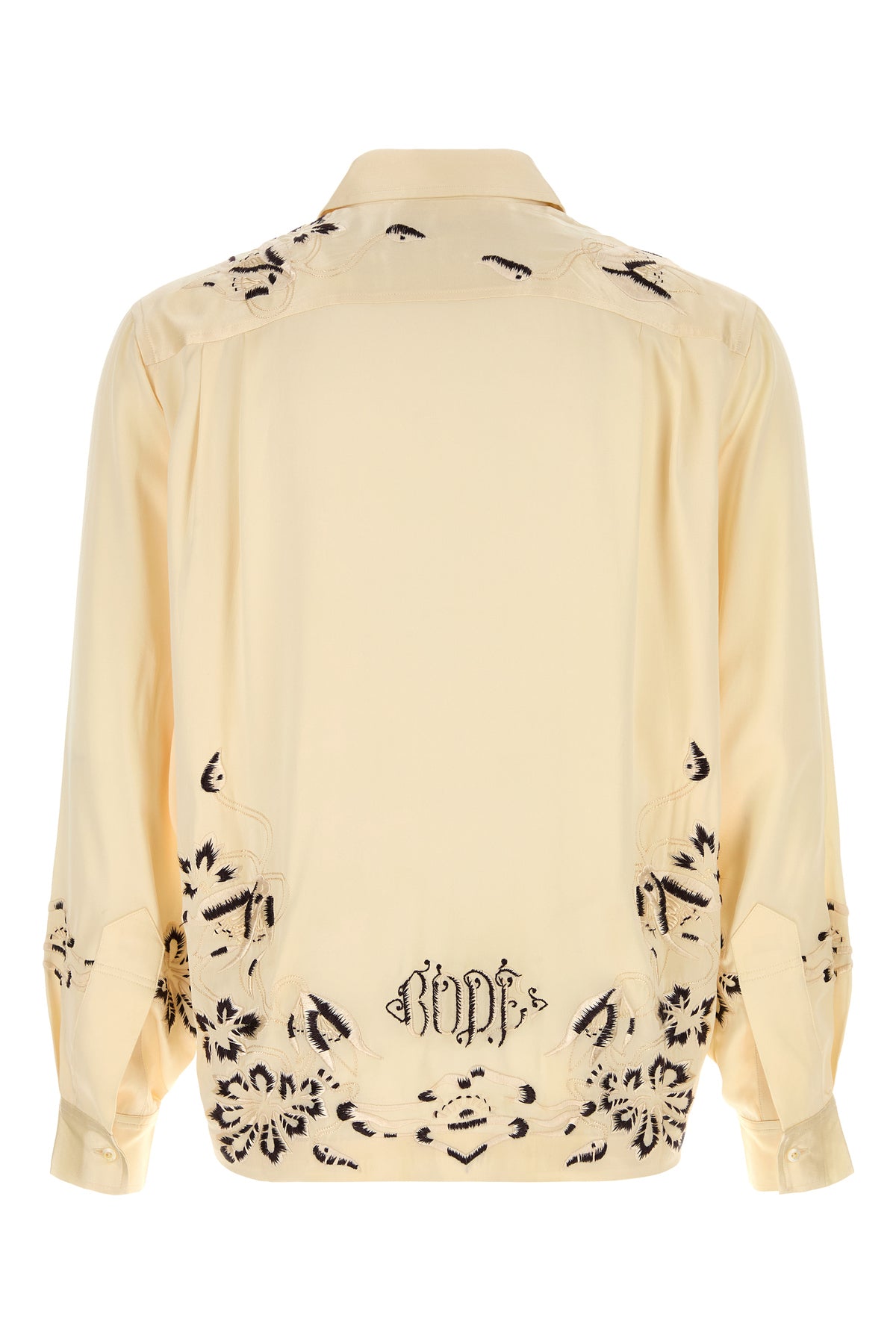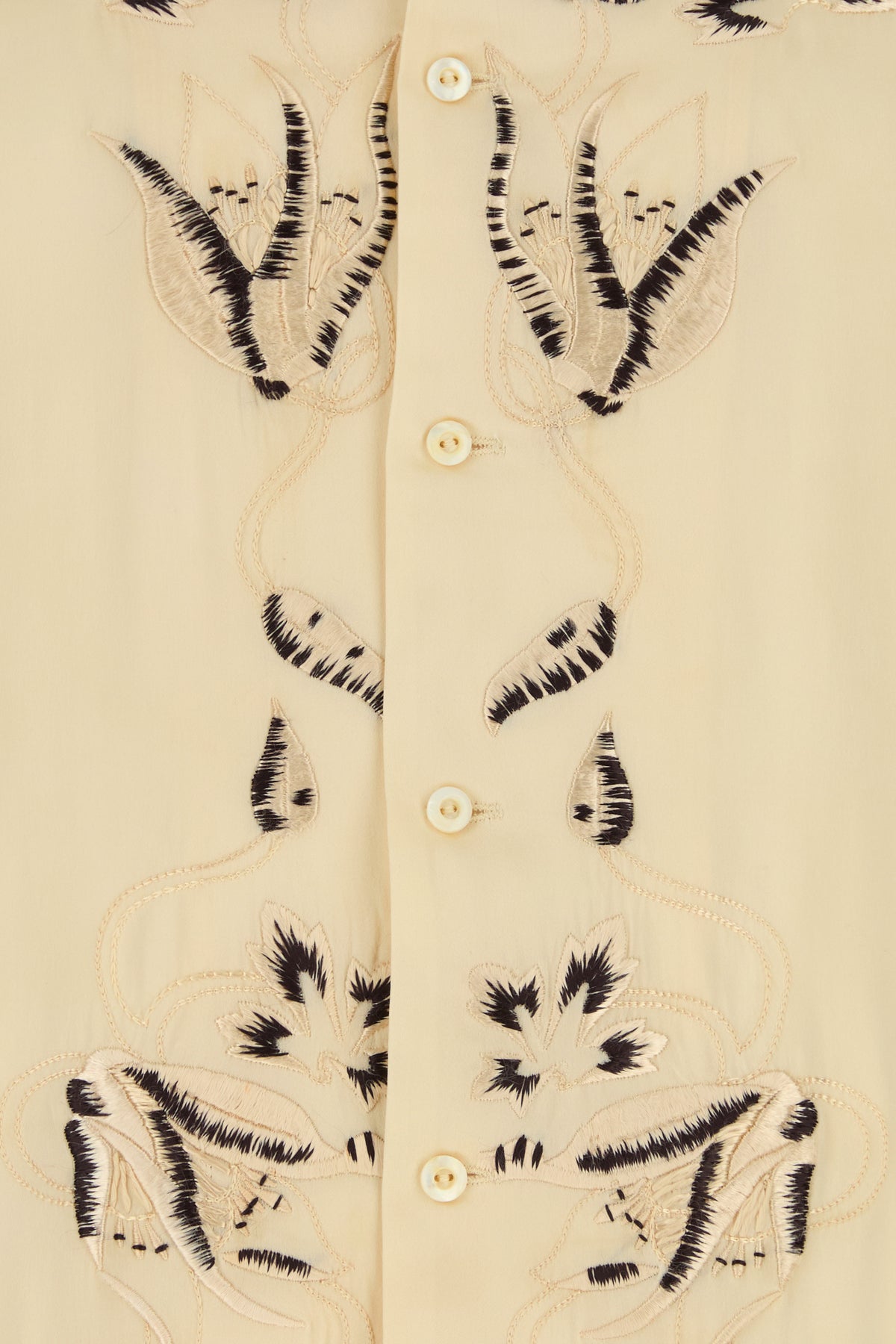 Shirt realized in pure silk satin characterized by Victorian embroidery on the entire surface.