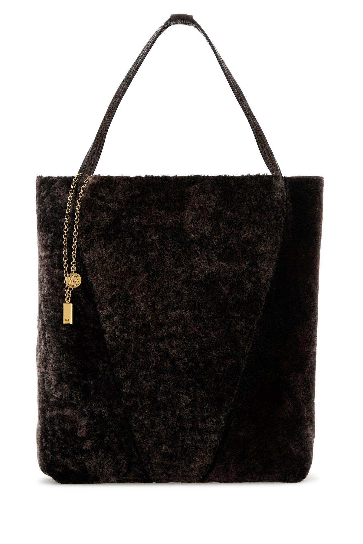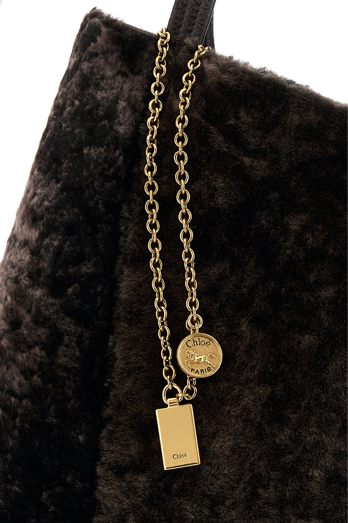 Shopping bag realized in shearling enriched by metal chain with Chloè and Horse charms at the top.