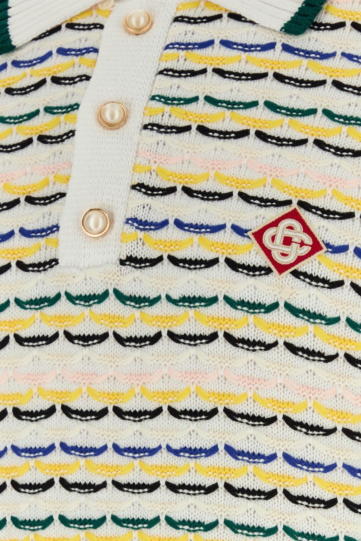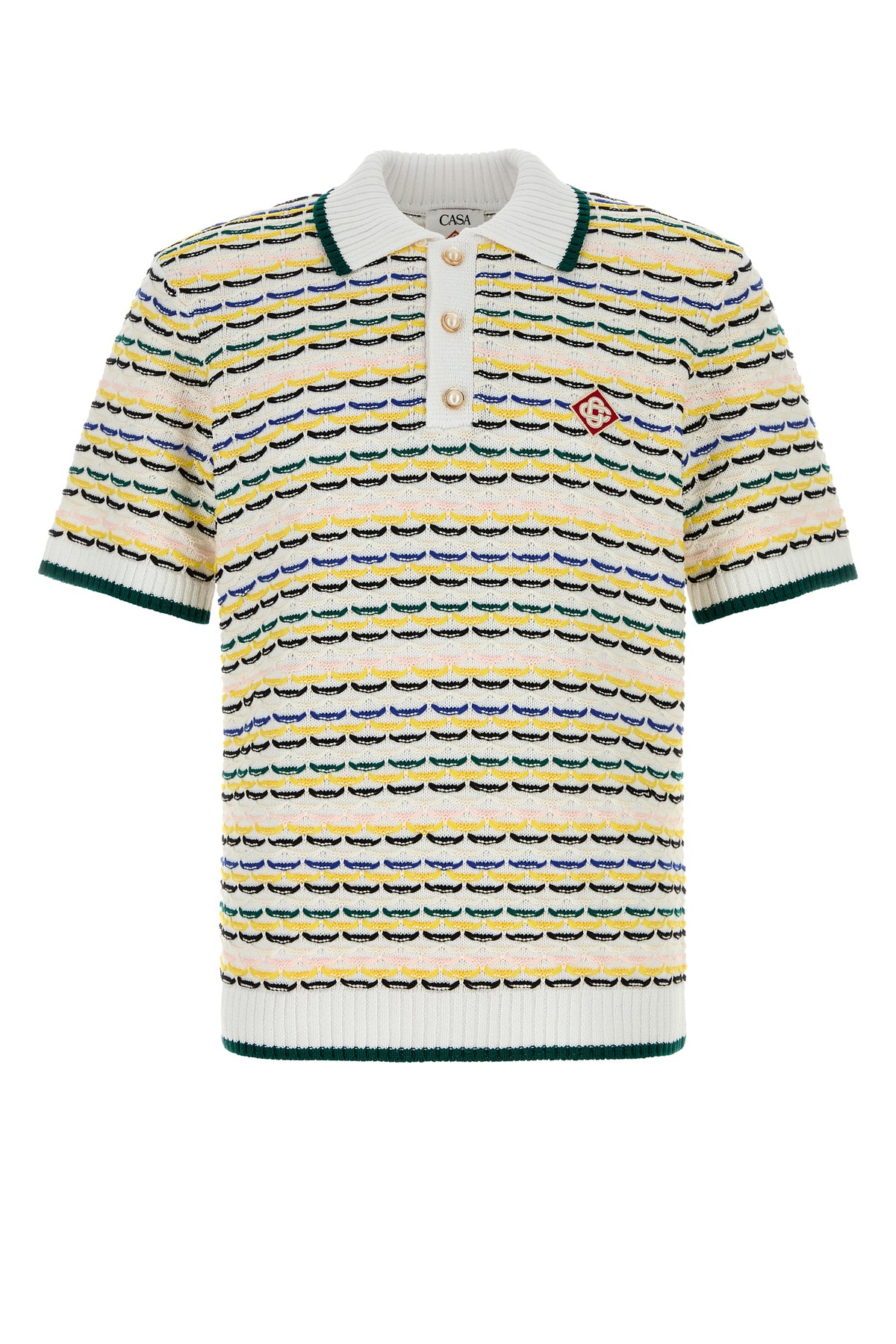 Polo shirt realized in pure cotton characterized by Tuck Stitch embroidery on the entire surface enriched by logoed patch on the chest.
