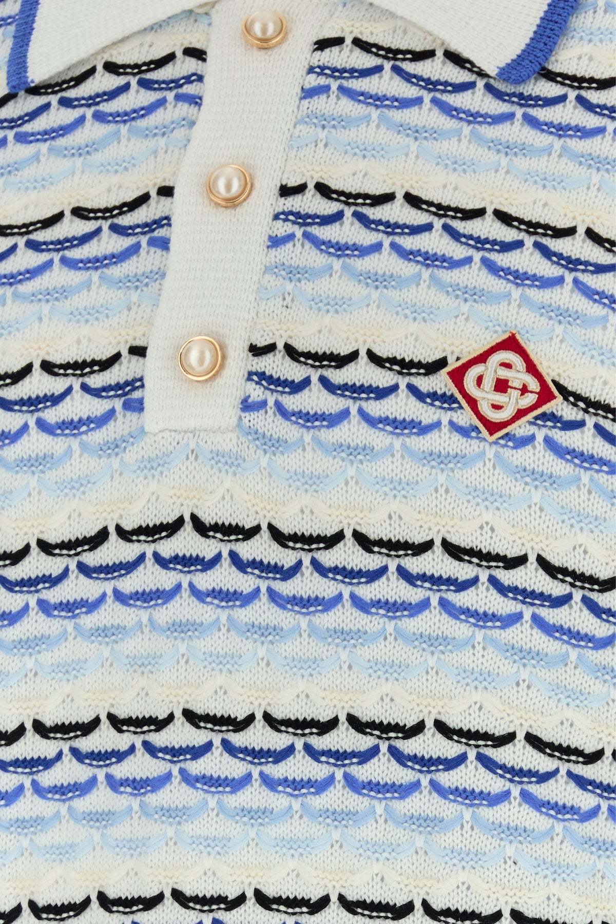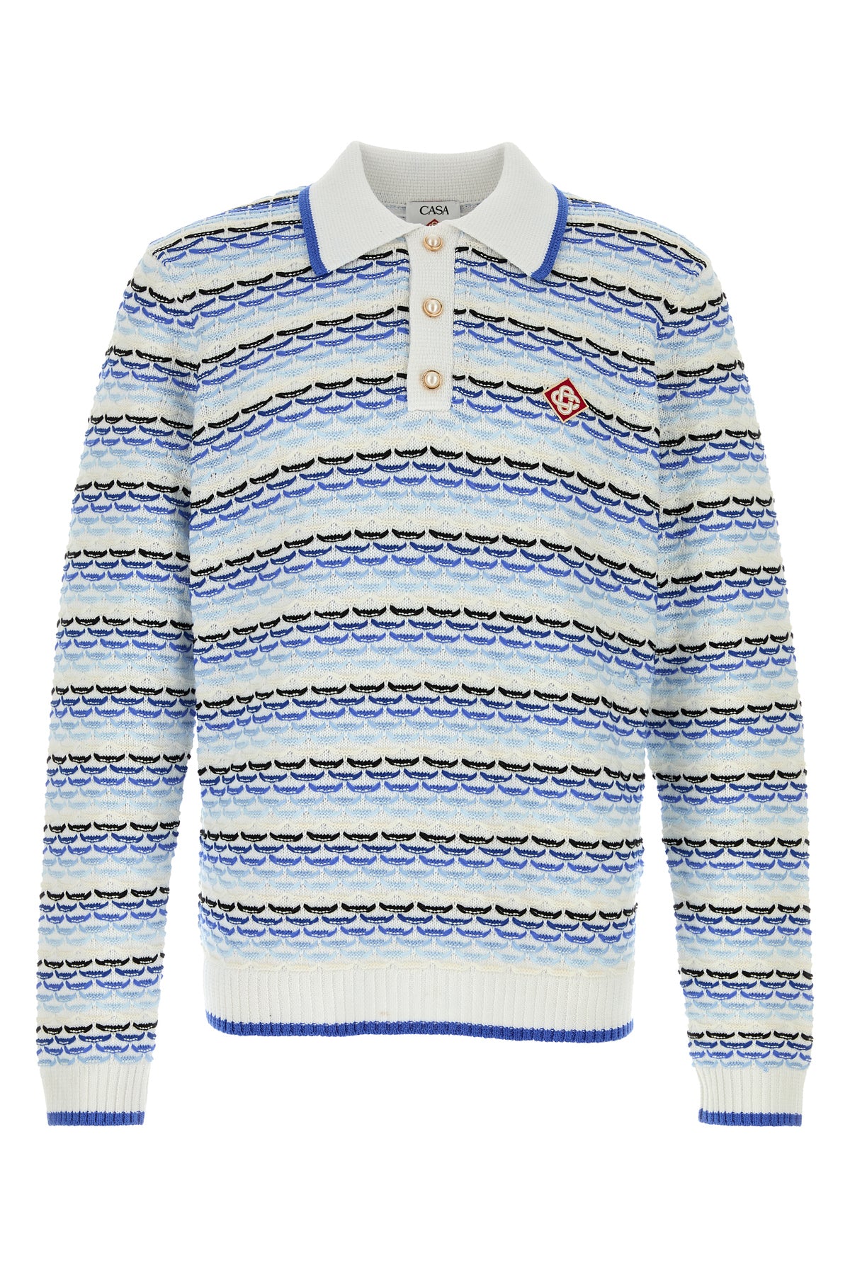 Long-sleeve polo shirt realized in pure cotton characterized by Tuck Stitch embroidery on the entire surface enriched by logoed patch on the chest.