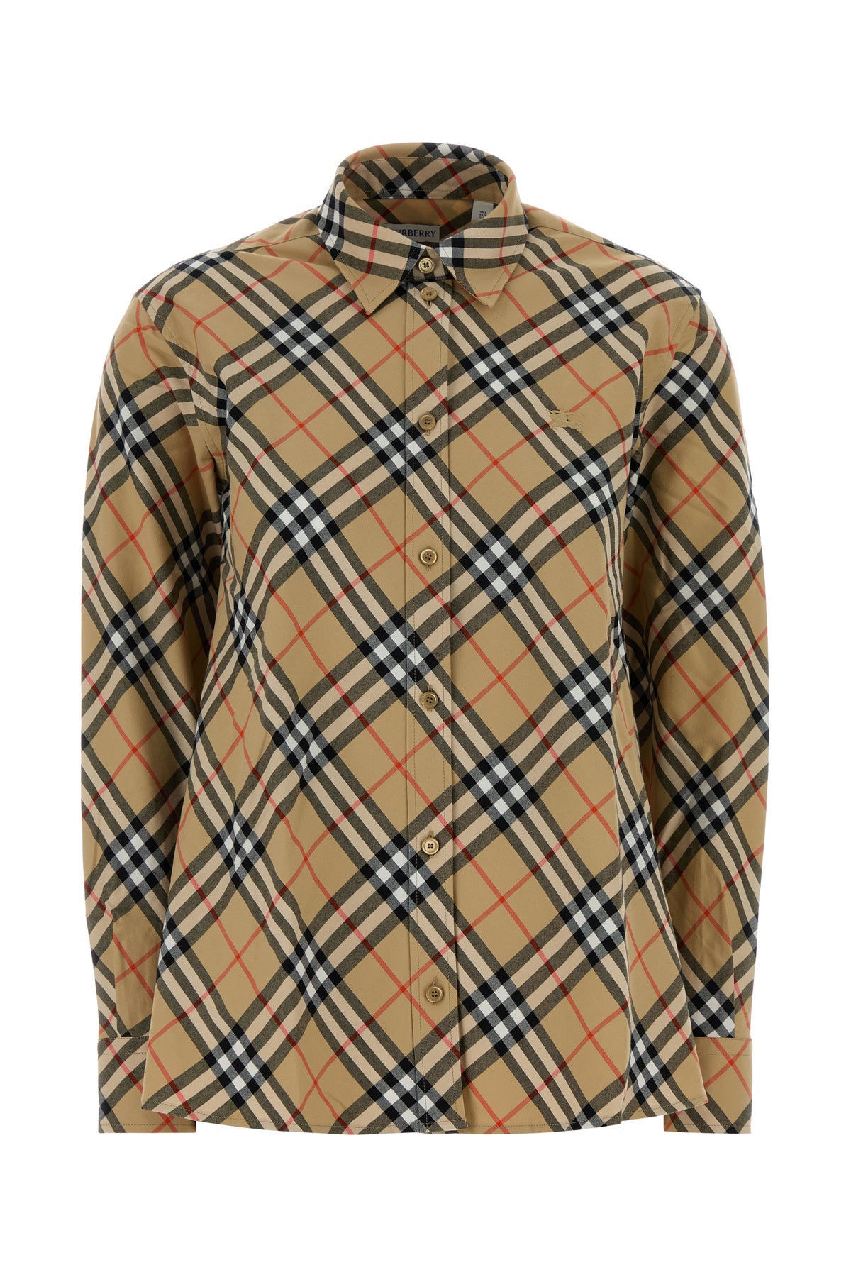 Shirt realized in pure cotton characterized by Burberry Check embroidery on the entire surface and Equestrian Knight embroidery on the chest.