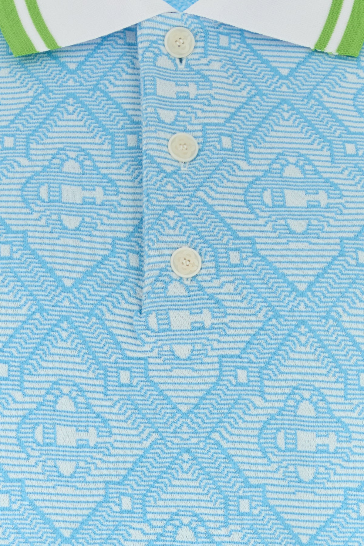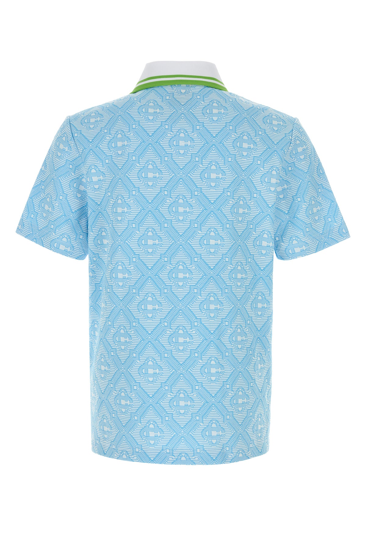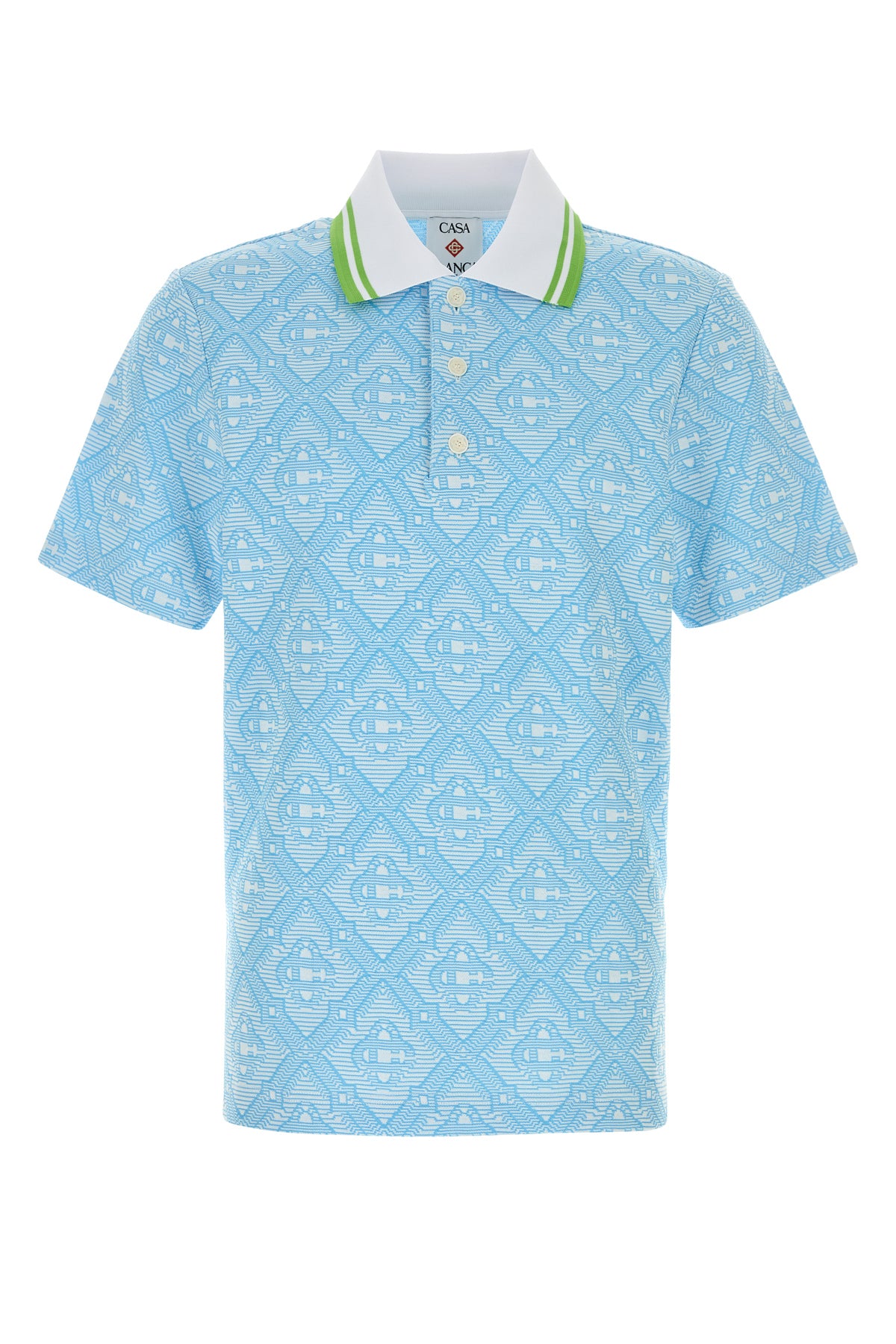 Polo shirt realized in jacquard characterized by logoed embroidery on the entire surface.