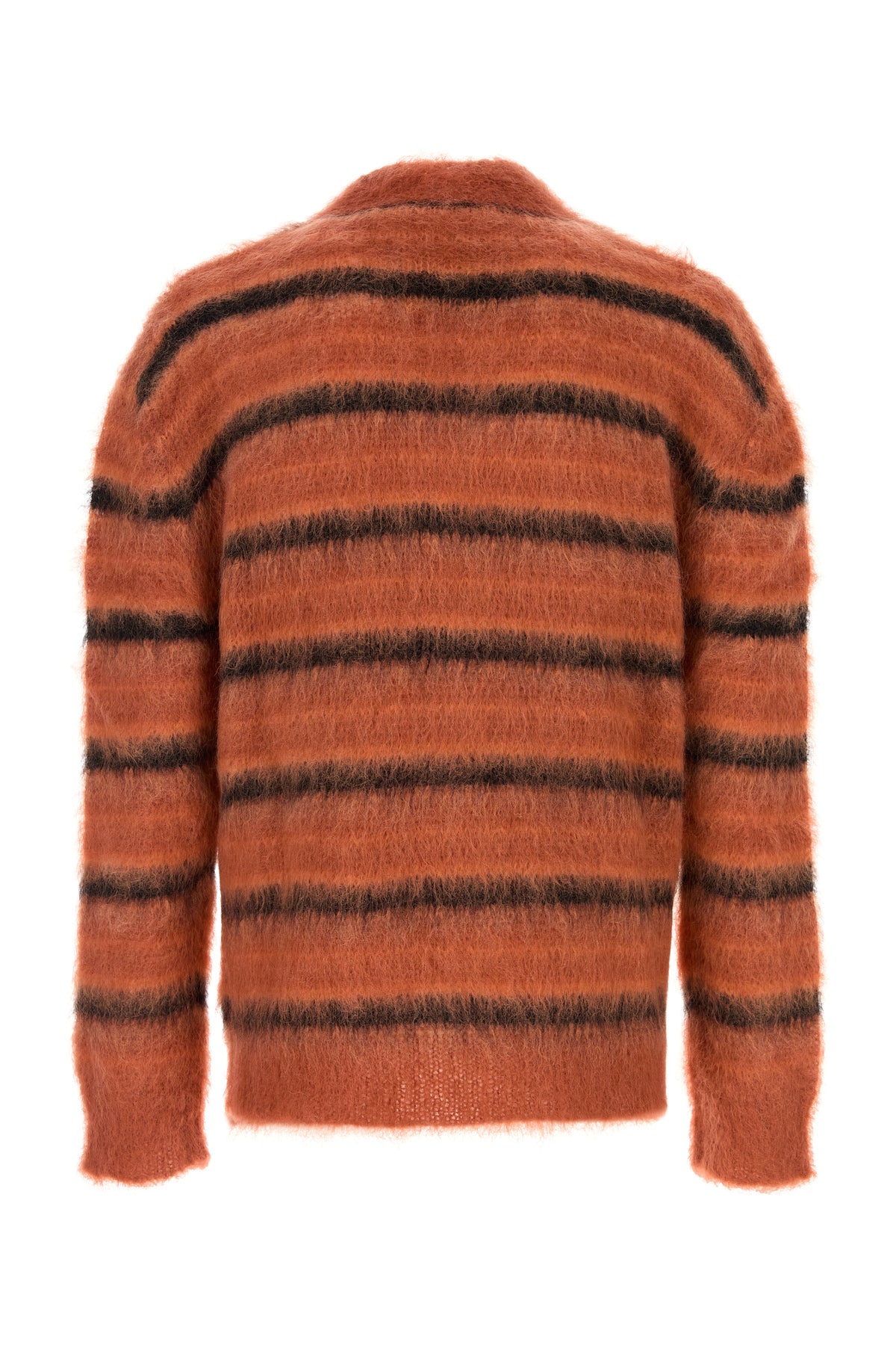 Cardigan realized in mohair blend characterized by striped embroidery on the entire surface.
