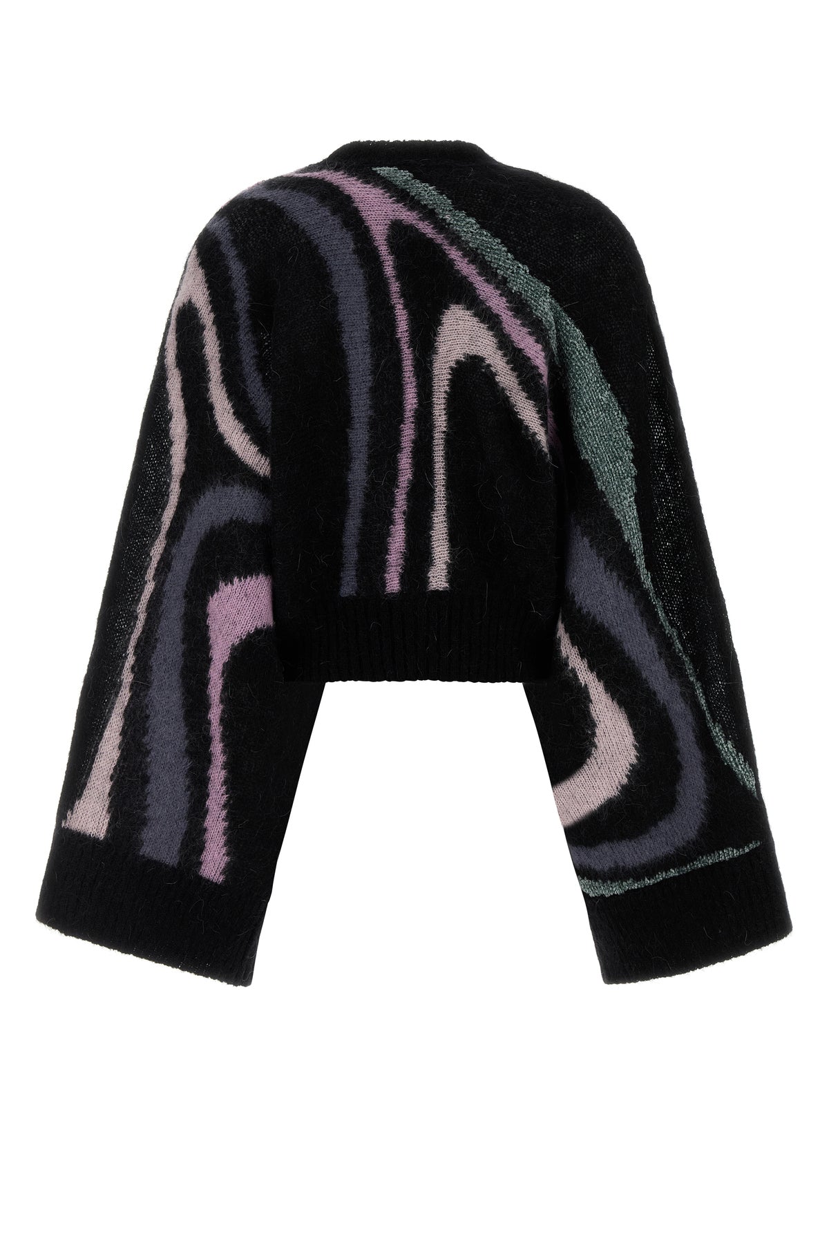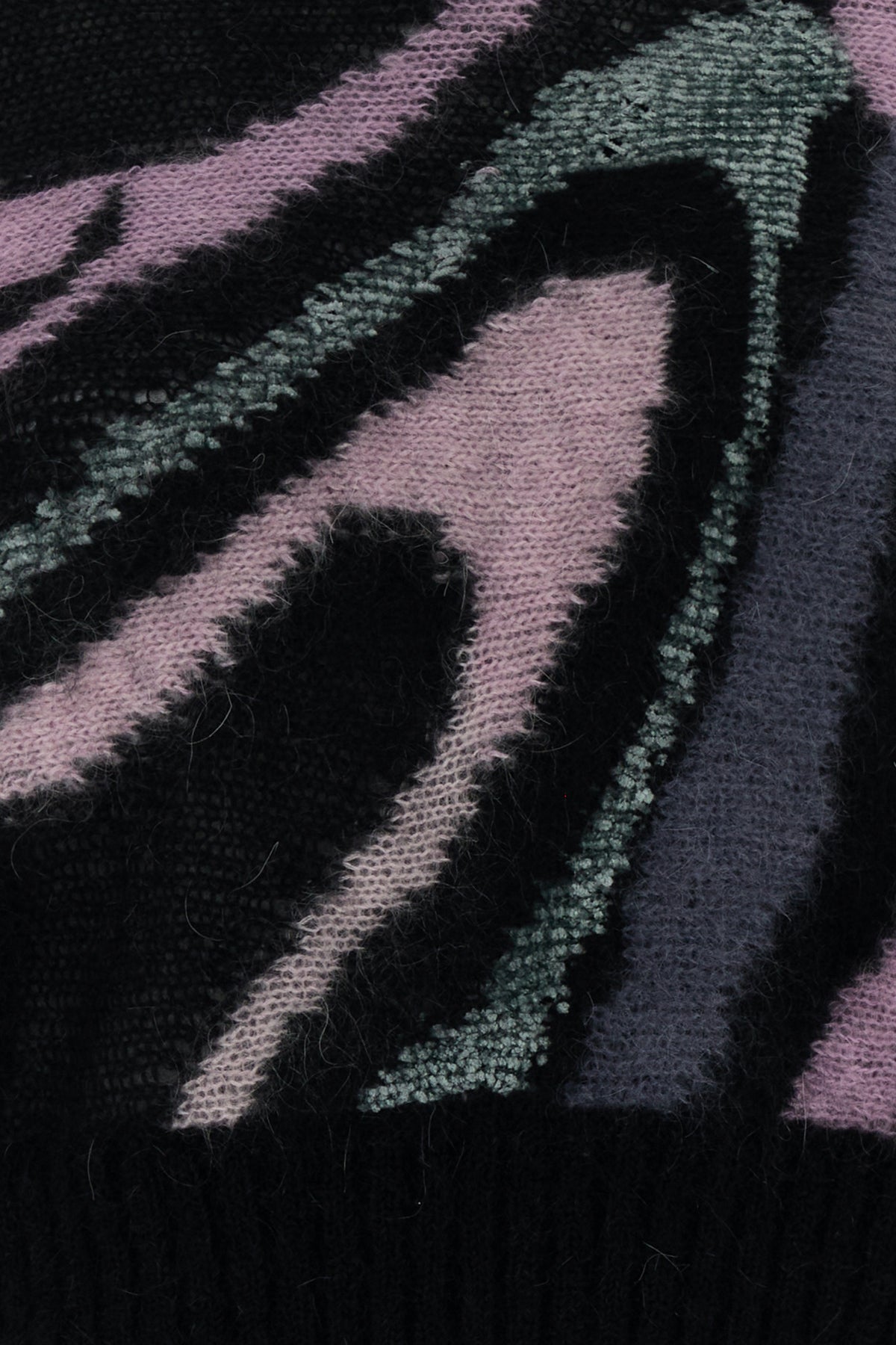 Short-cut oversize cardigan realized in mohair blend characterized by peculiar embroidery on the entire surface.