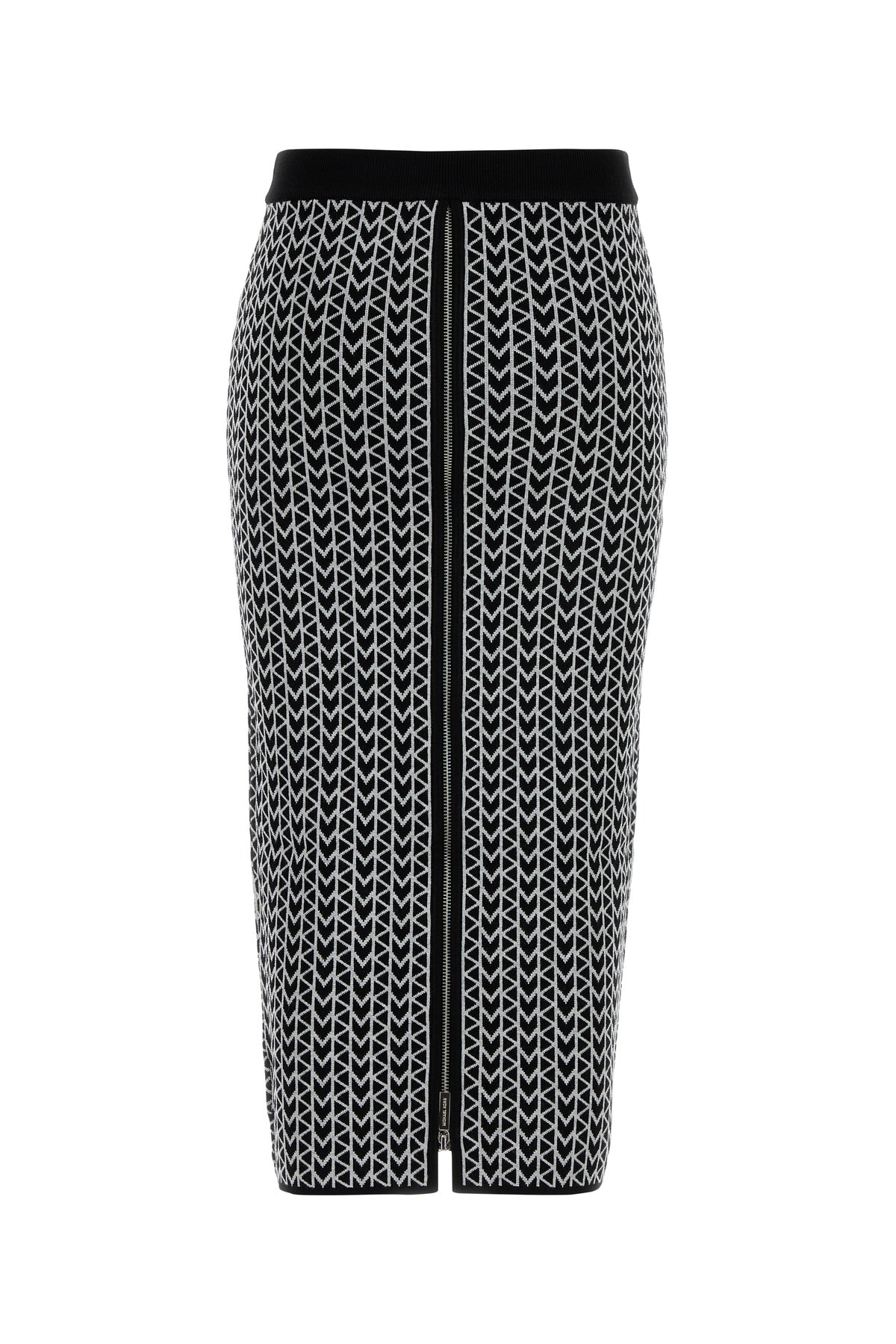 Midi-length skirt realized in stretch viscose blend characterized by MK embroidery at the back.