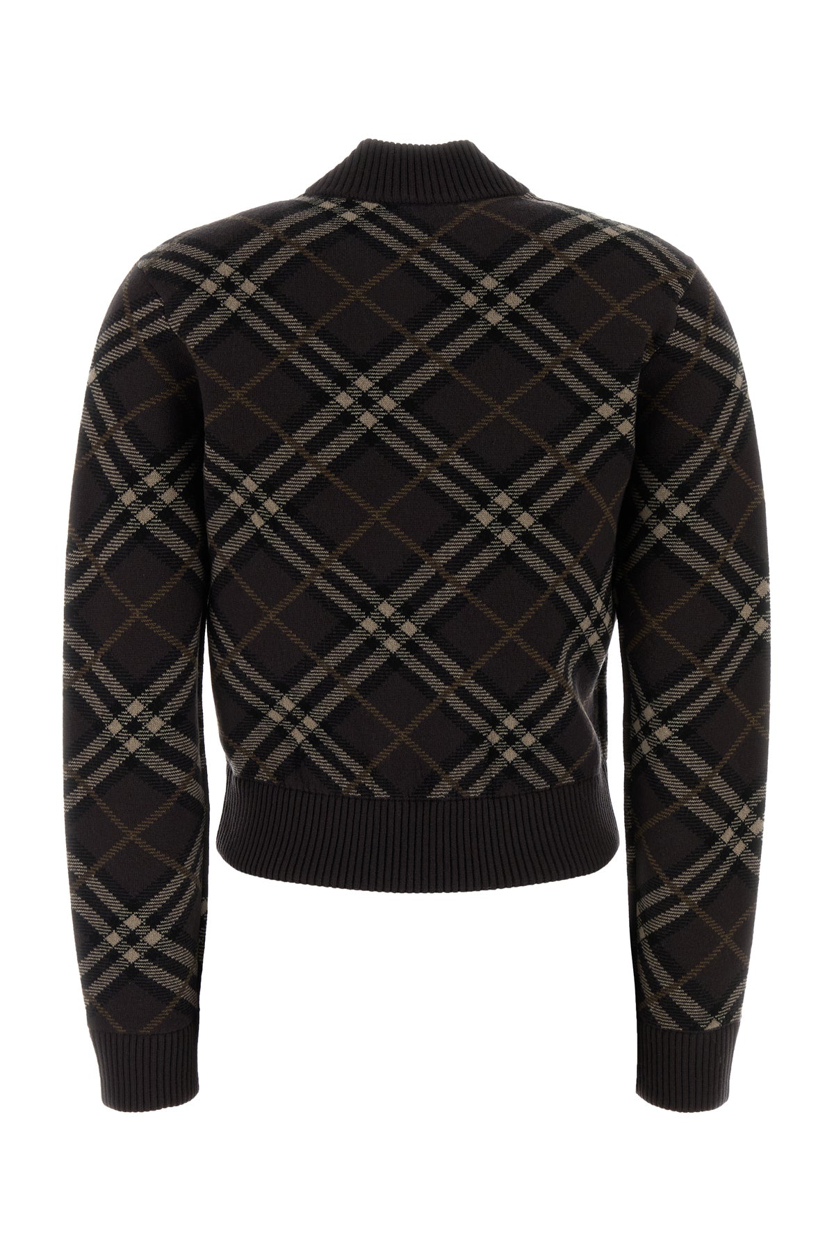 Cardigan realized in stretch wool blend characterized by Burberry Check embroidery on the entire surface.