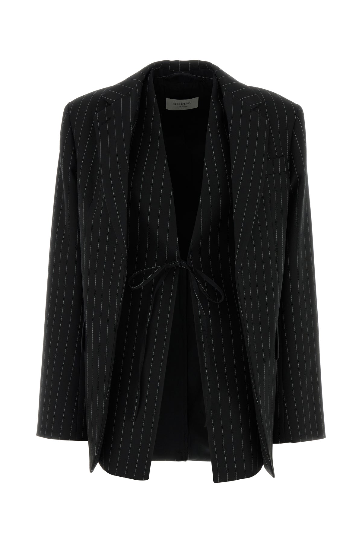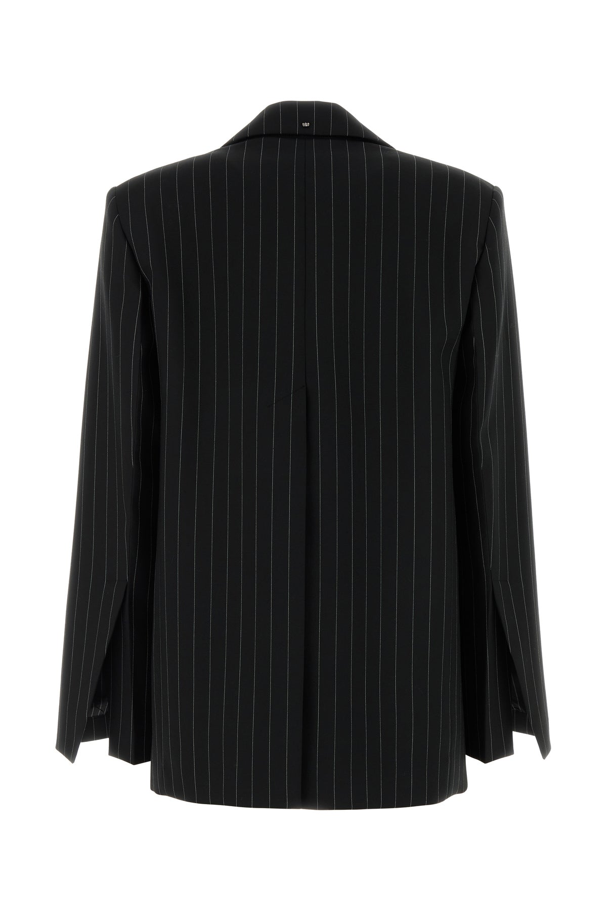 Blazer realized in virgin wool blend characterized by pin-striped embroidery on the entire surface.