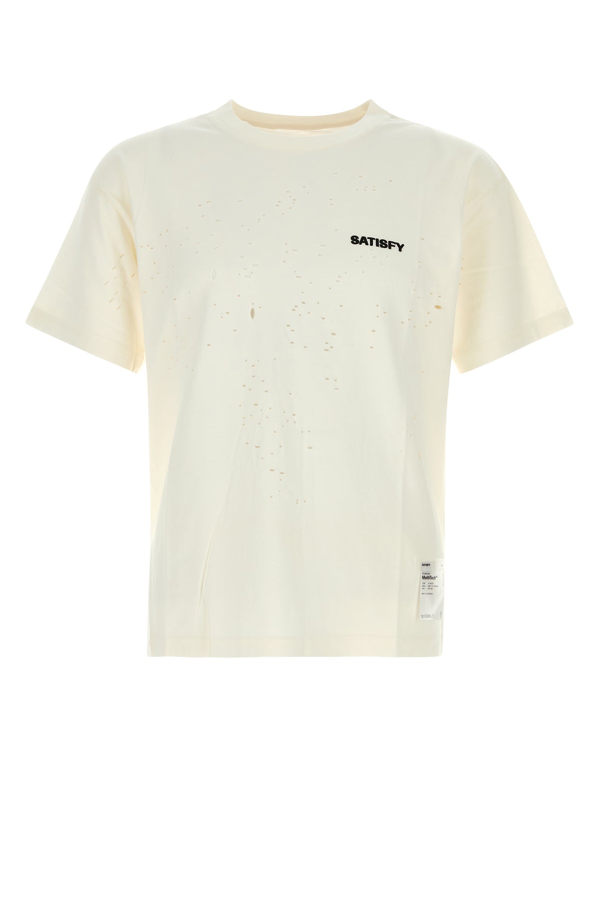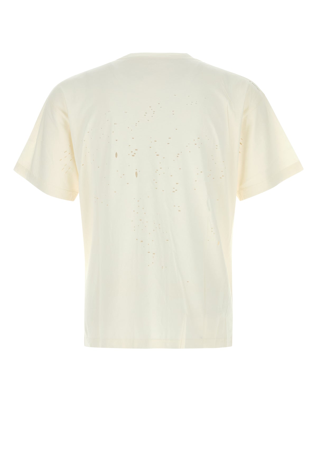 T-shirt realized in distressed pure organic cotton characterized by embroidered logo on the chest enriched by logoed label on the hemline.