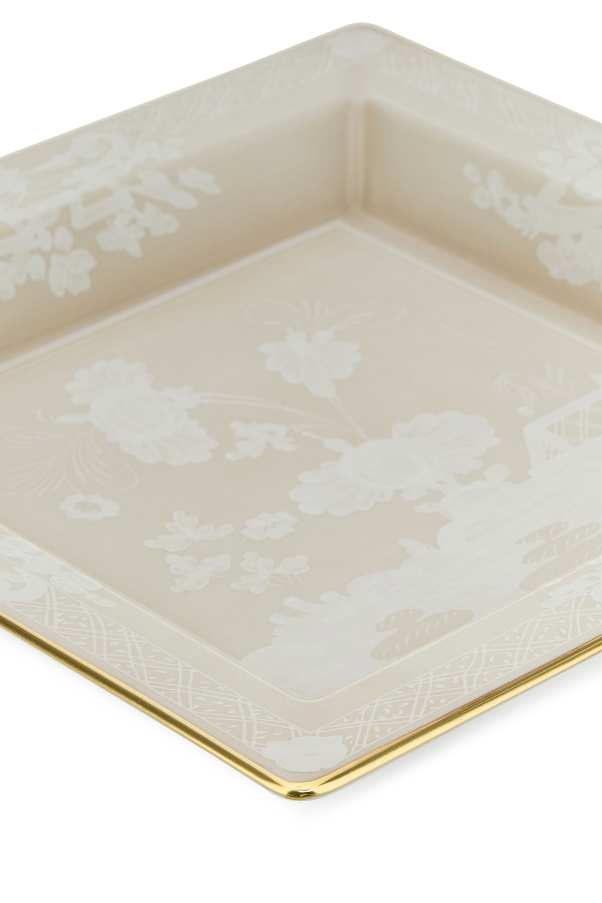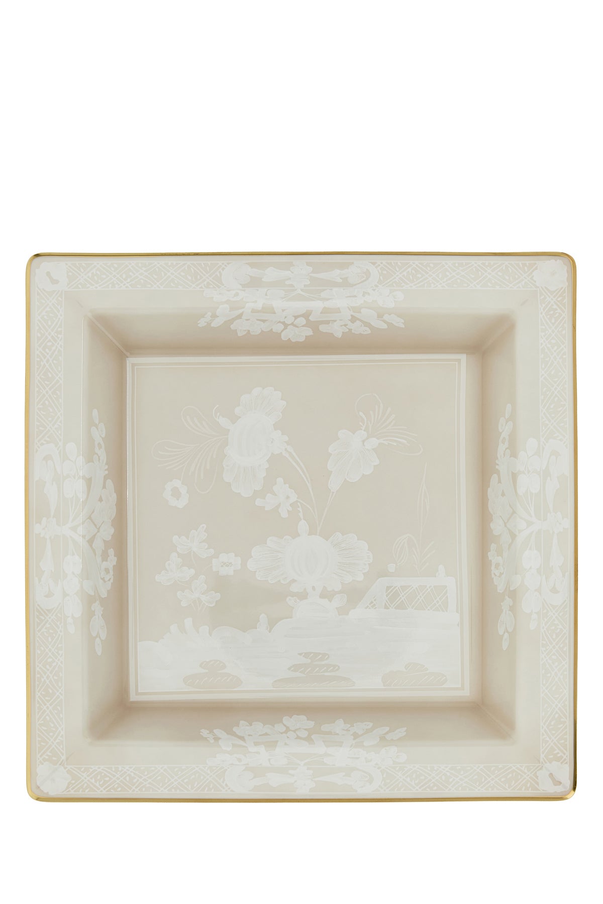 Vide poche realized in porcelain characterized by Ornate Italiano embellishment on the entire surface.
