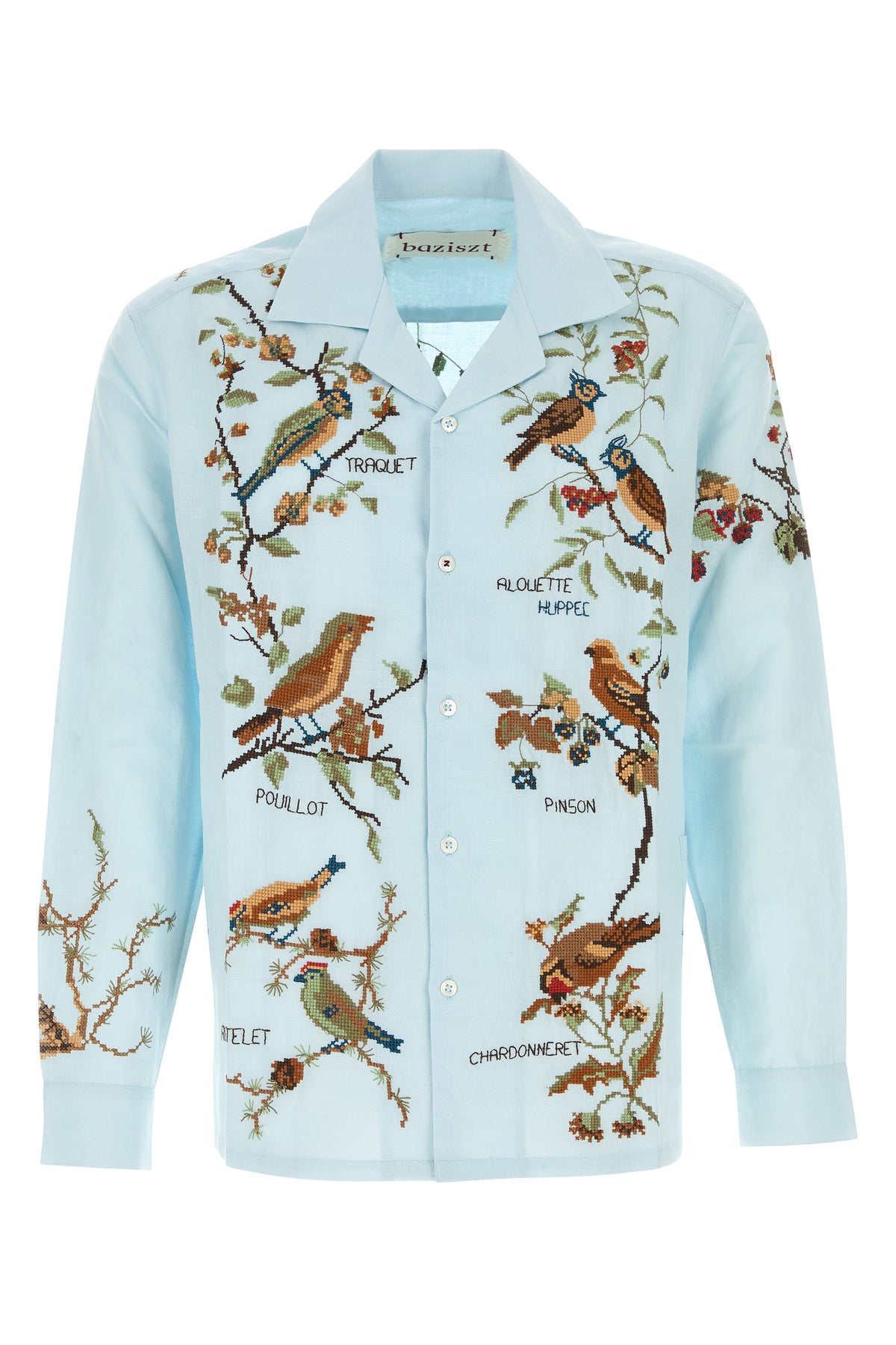 Shirt realized in cotton and hemp characterized by Avian embroidery at the front and at the back.