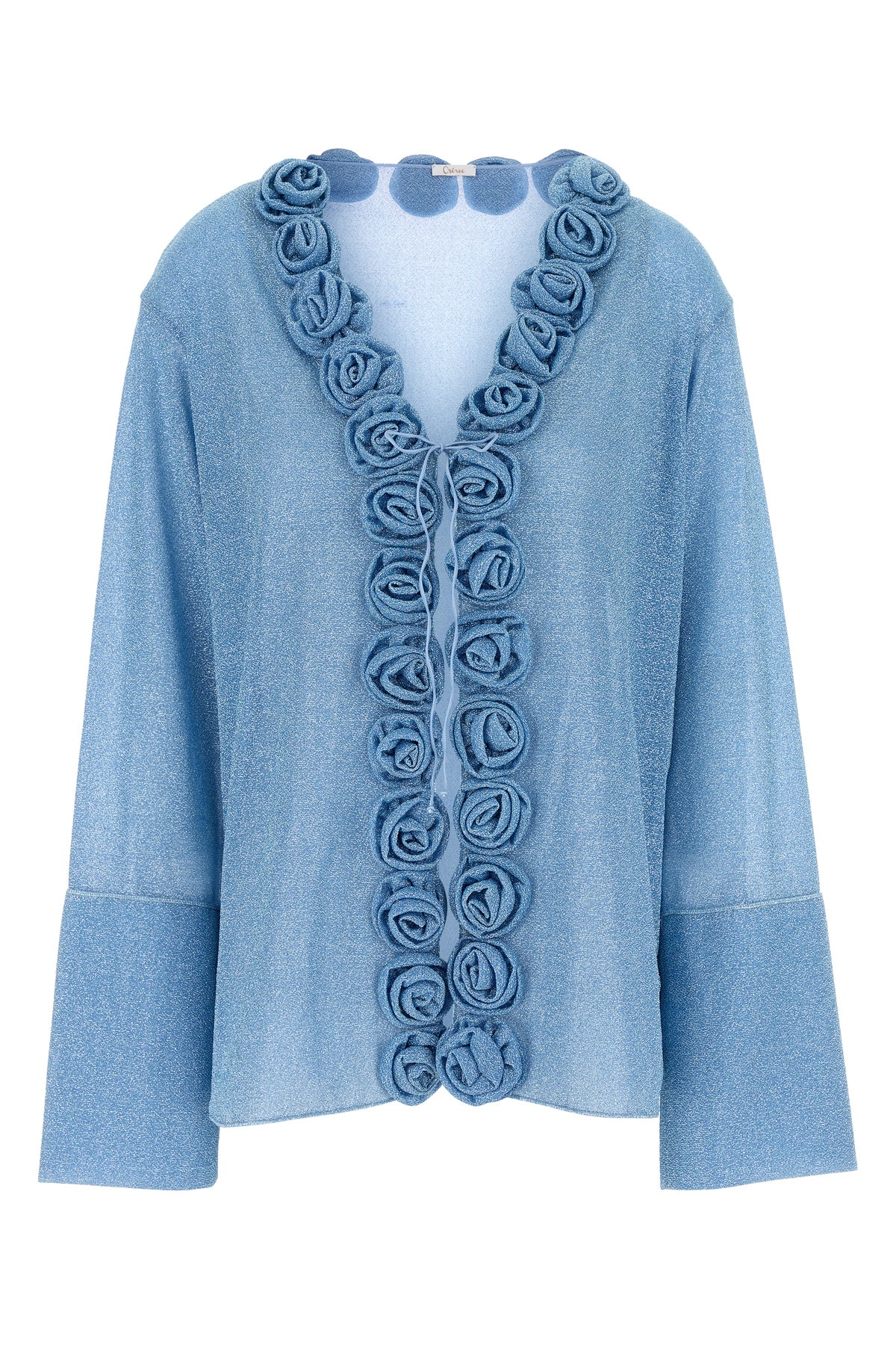 Blouse realized in nylon with lurex threads enriched by floral embellishments at the front.