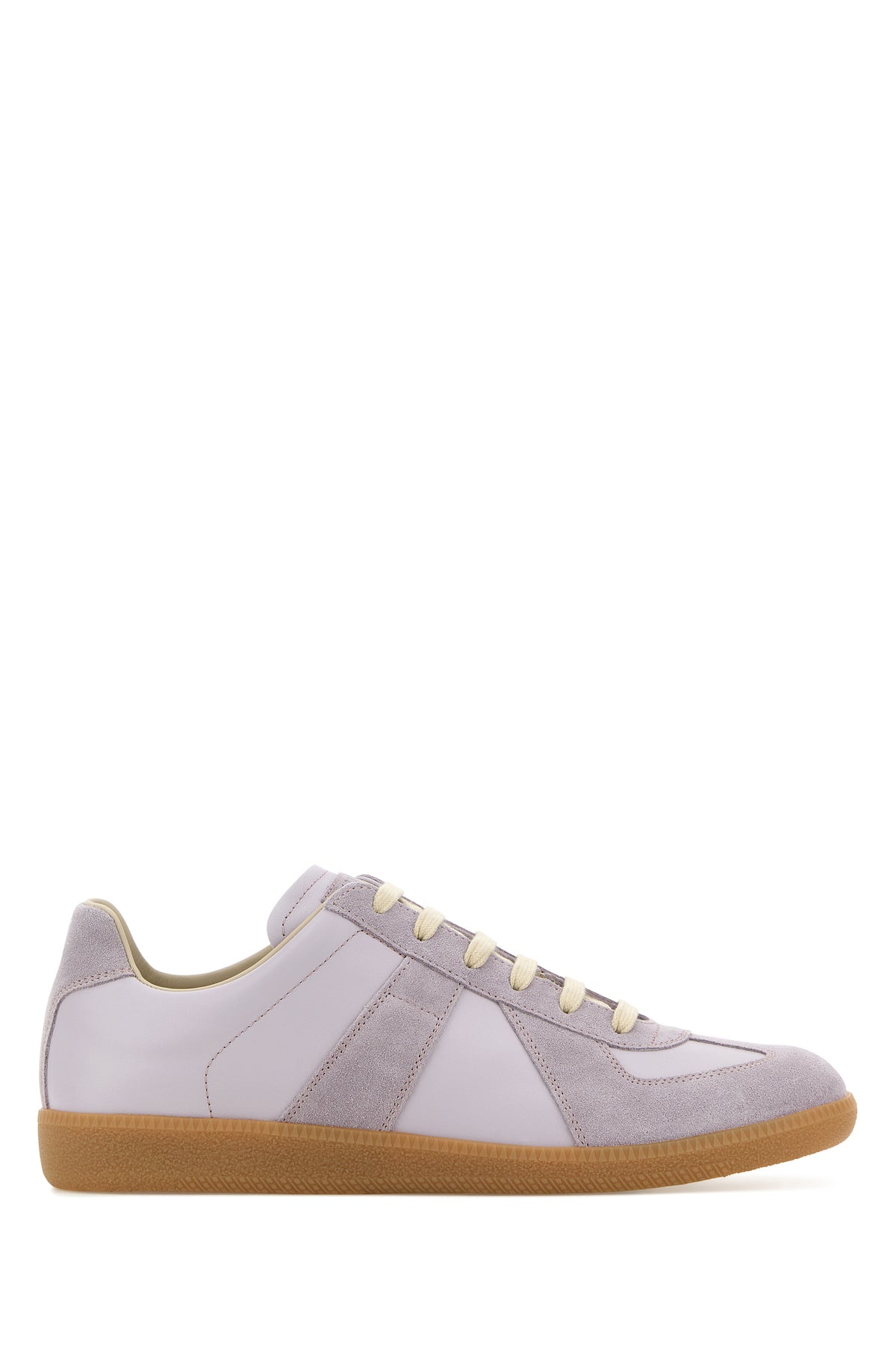 Sneakers realized in smooth bovine leather and suede characterized by stitching at the back.