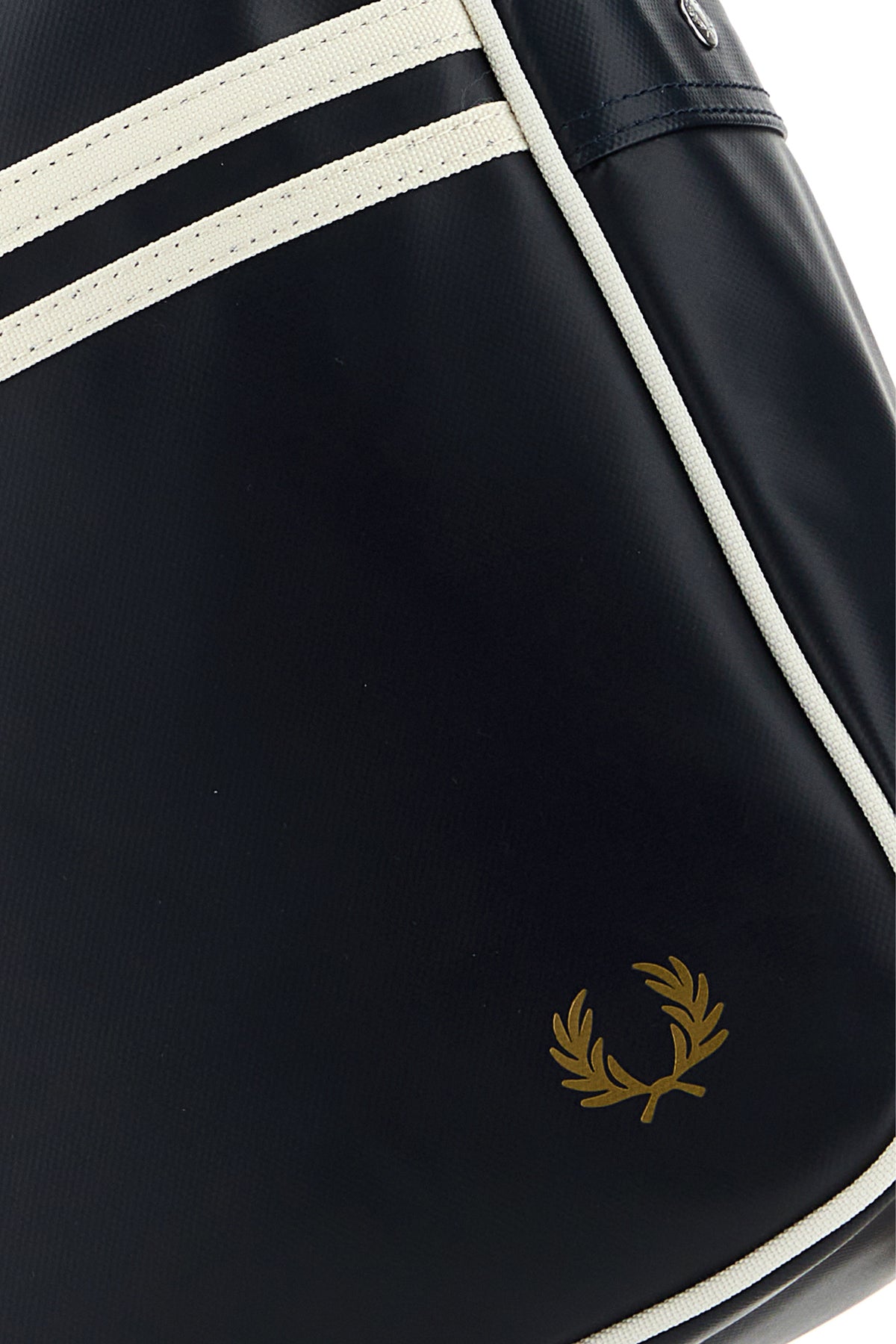 Shopping bag realized in coated canvas characterized by contrasting printed logo on the hemline.
