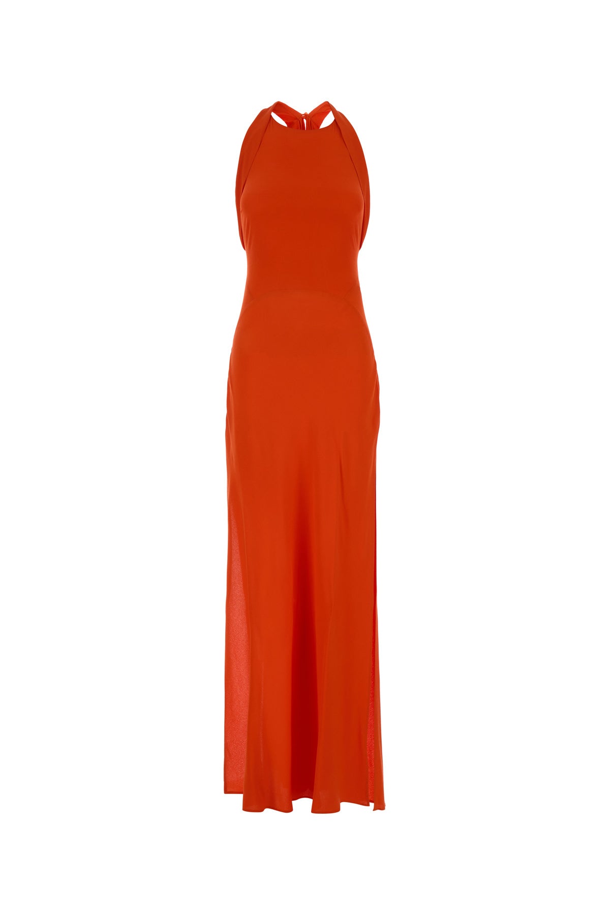 Long dress realized in viscose marocaine enriched by scarf to tie at the neck.