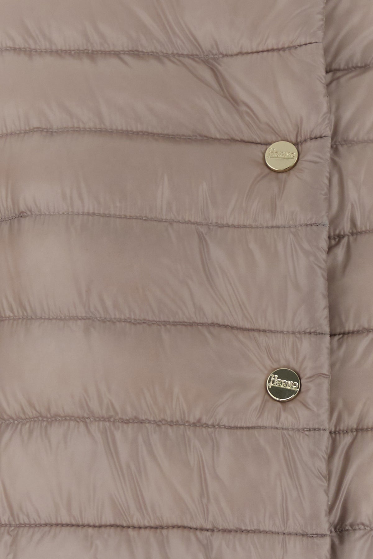 Reversible down jacket realized in quilted nylon characterized by round neckline.