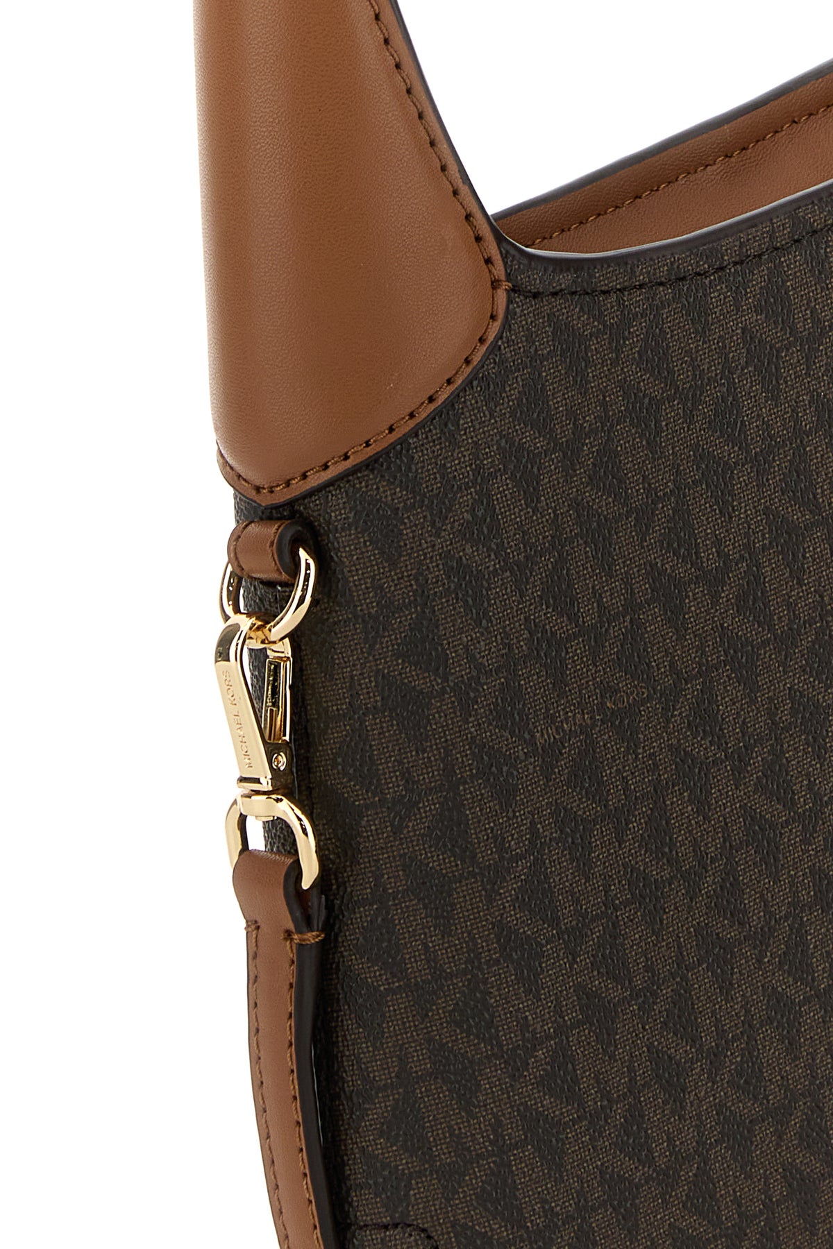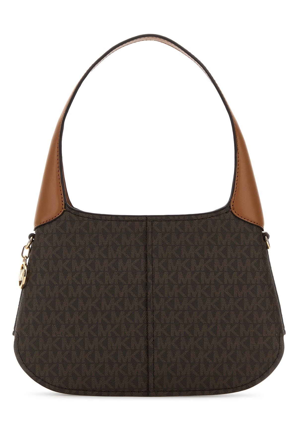 Shoulder bag realized in coated canvas characterized by printed logo on the entire surface enriched by metal lettering logo at the front.