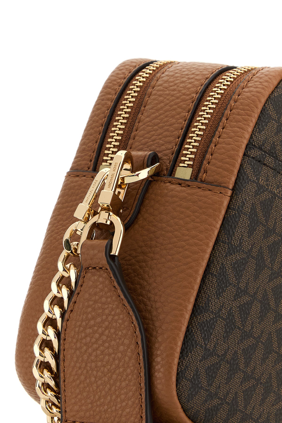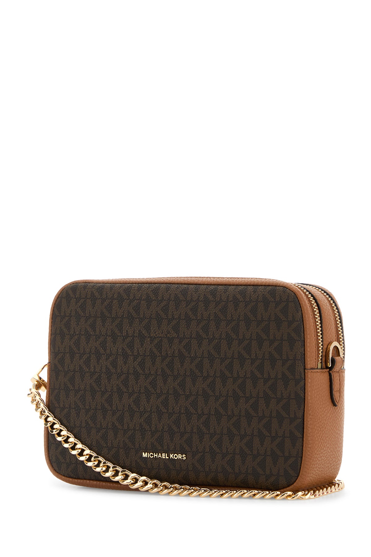 Crossbody bag realized in coated canvas characterized by printed logo on the entire surface enriched by metal lettering logo at the front.