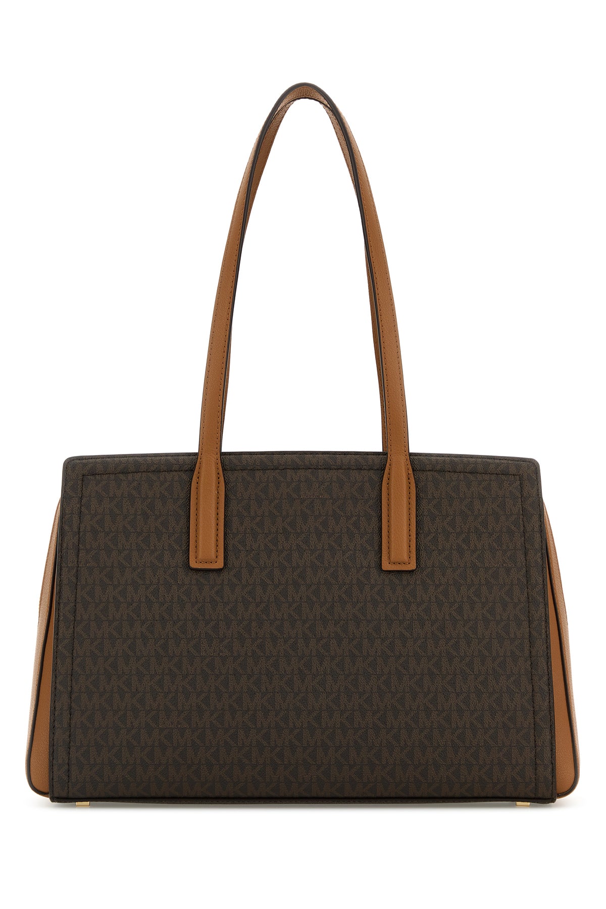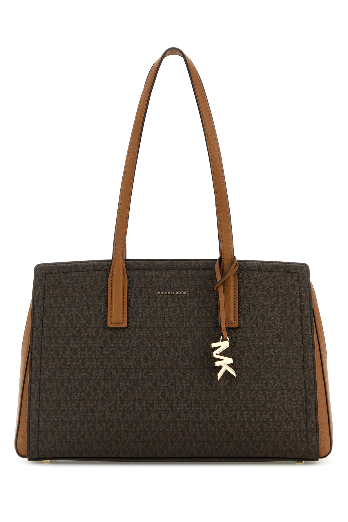 Shopping bag realized in coated canvas characterized by logoed print on the entire surface enriched by metal lettering logo at the front.