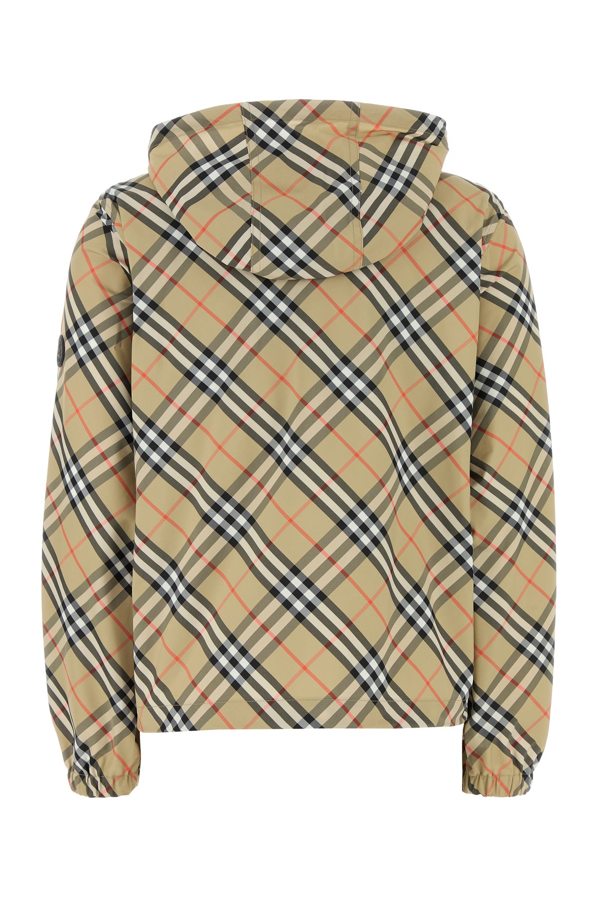 Windbreaker realized in polyester characterized by Burberry Check print on the entire surface enriched by Equestrian Knight patch on the sleeve.