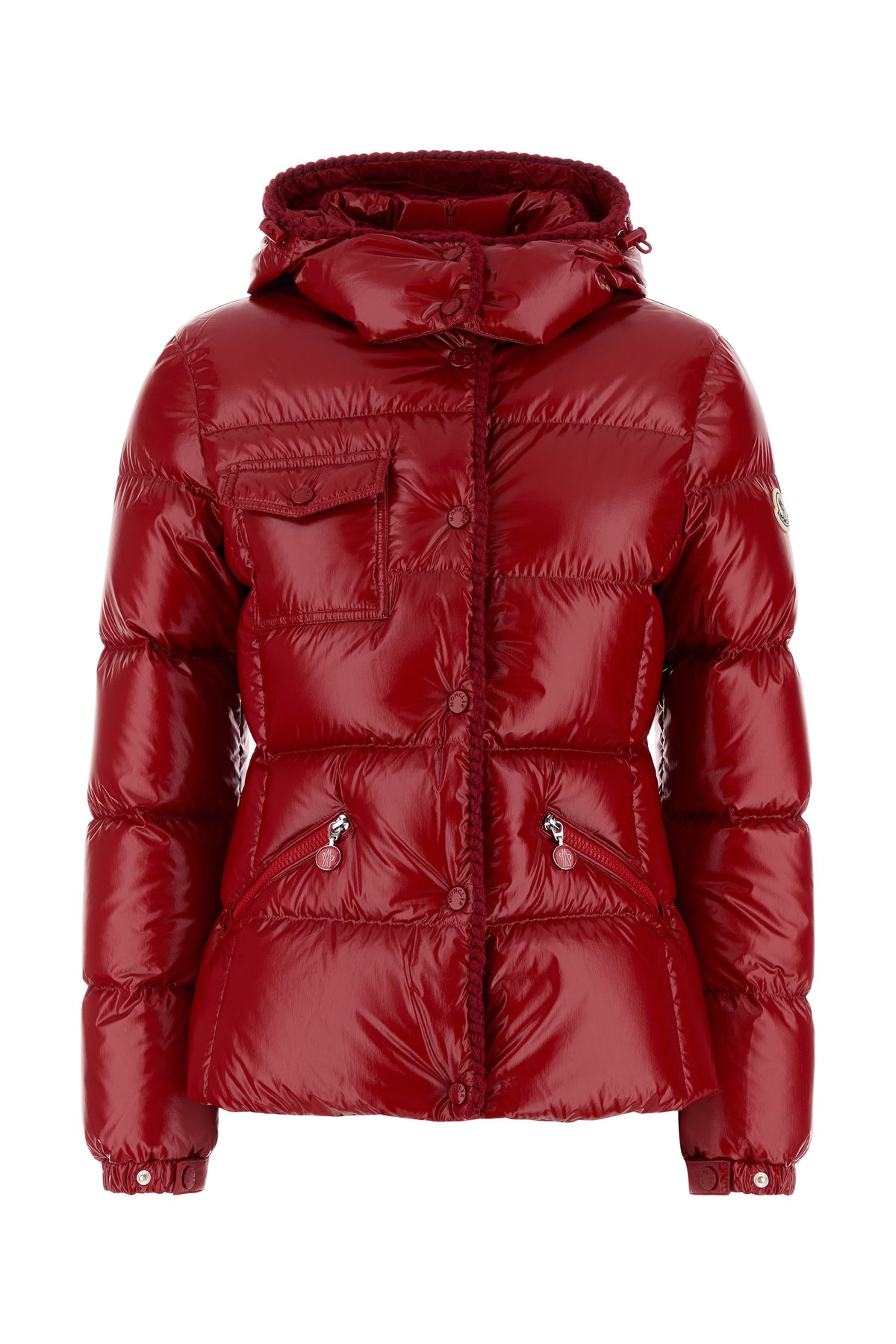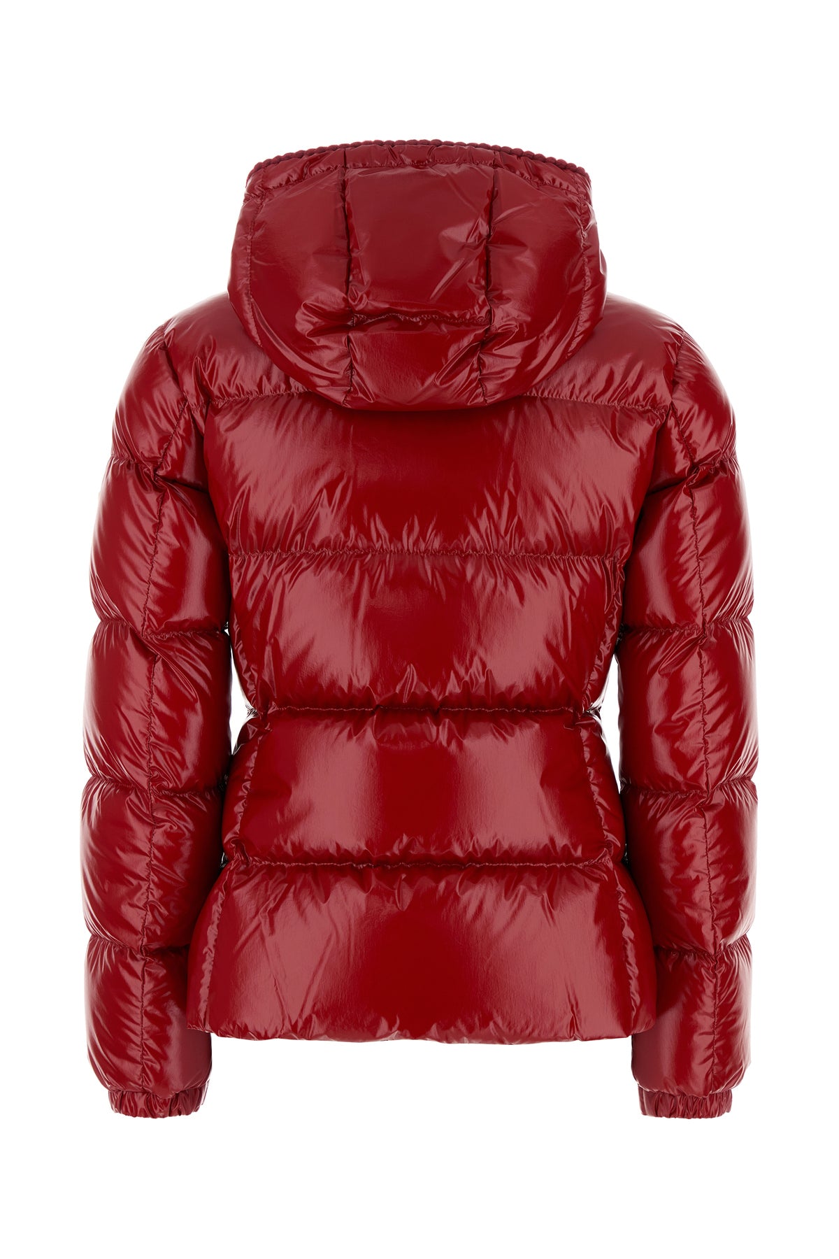Down jacket realized in polished-finish quilted nylon enriched by contrasting logoed patch on the sleeve.