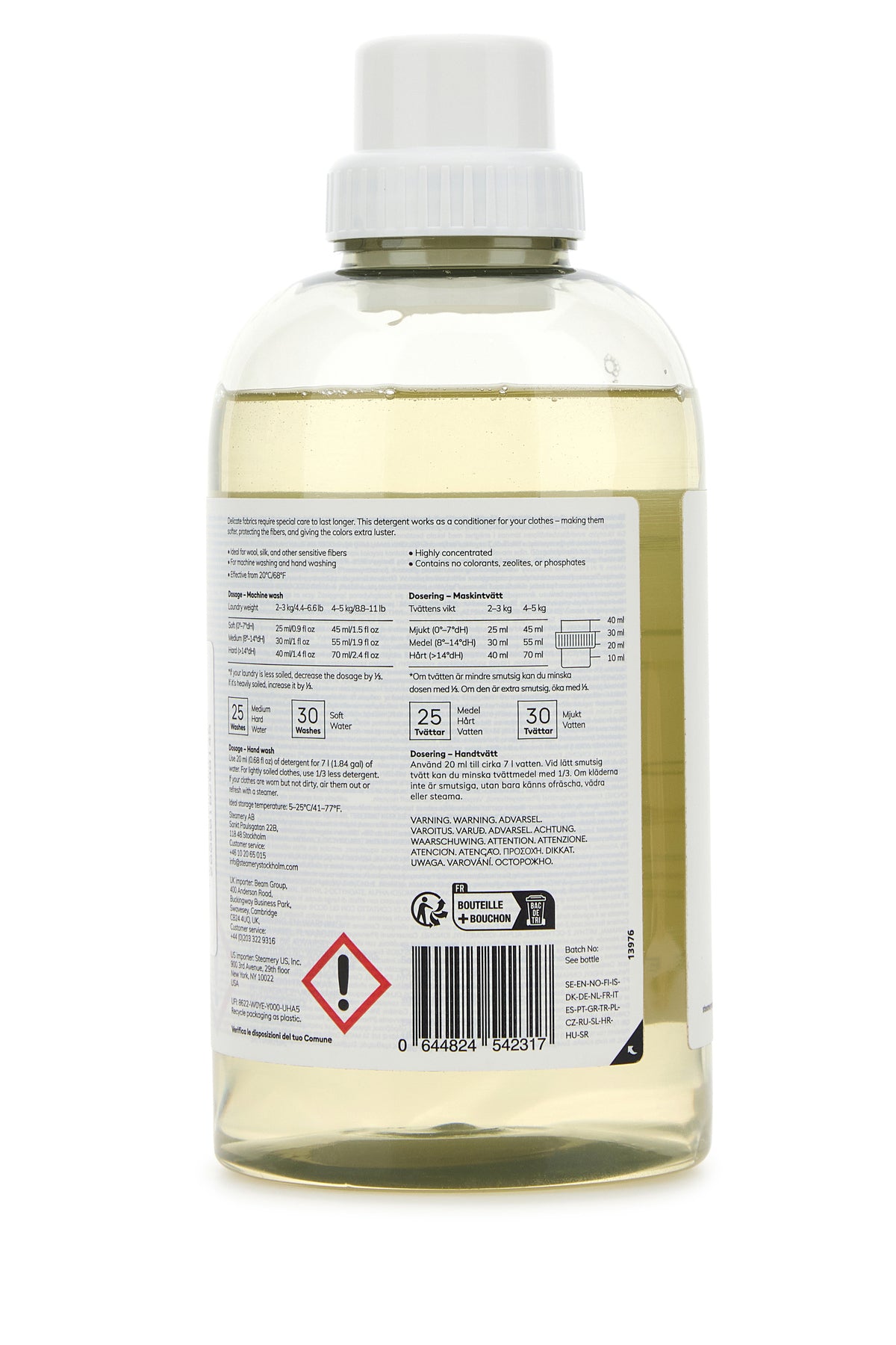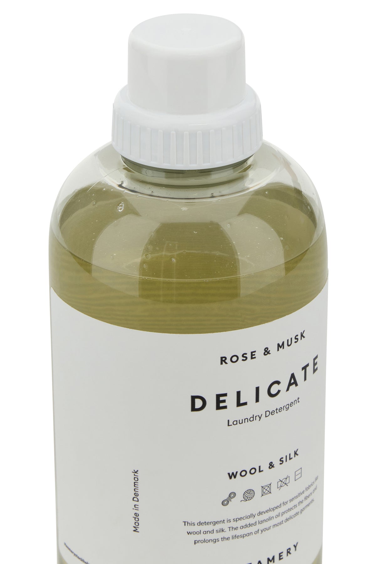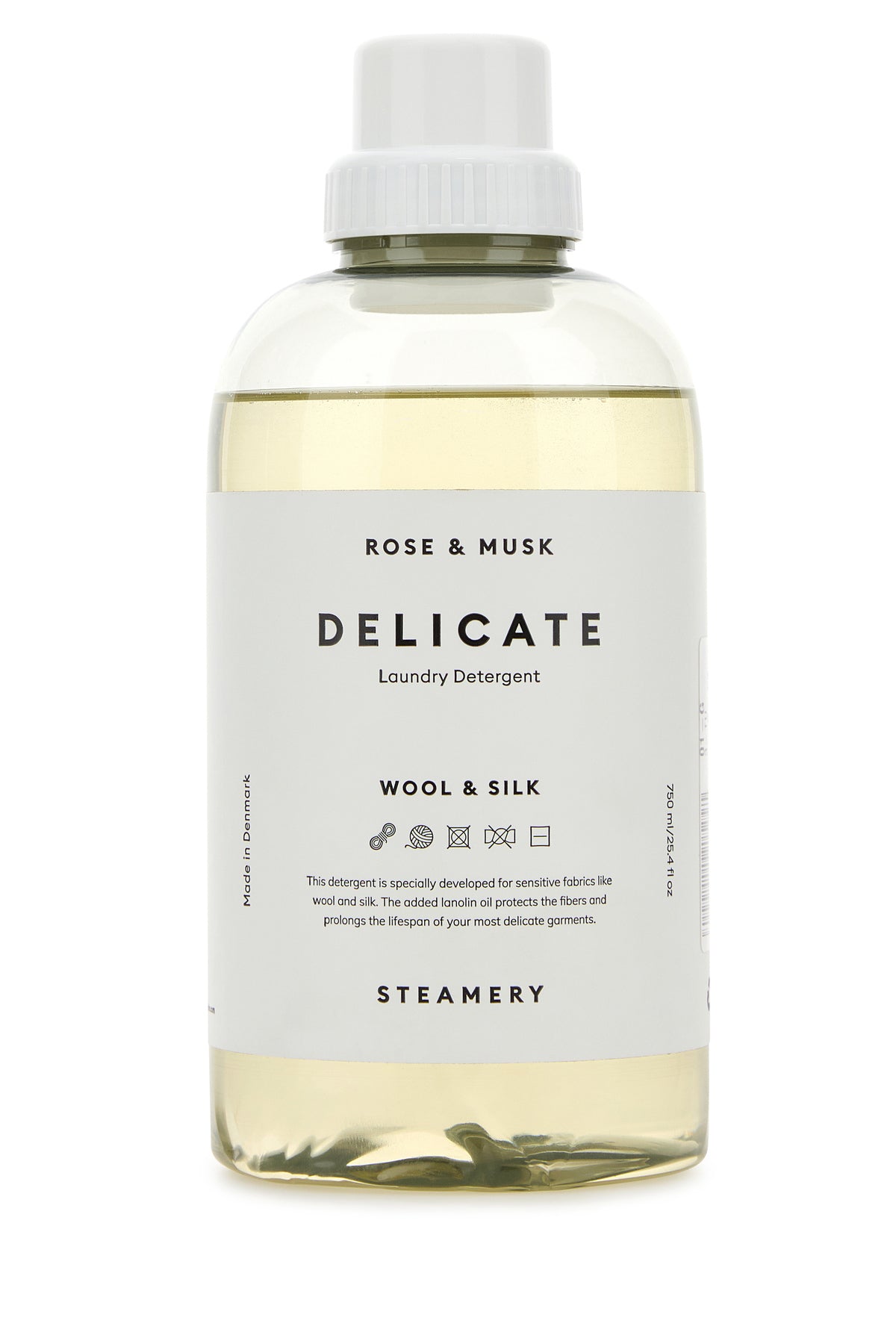 Laundry liquid detergent, specifically designed for delicate fabrics like wool and silk. It is enriched with lanolin oil that nourishes and protects the fibers of the clothes, giving them great shine. With the scent of rose and musk.