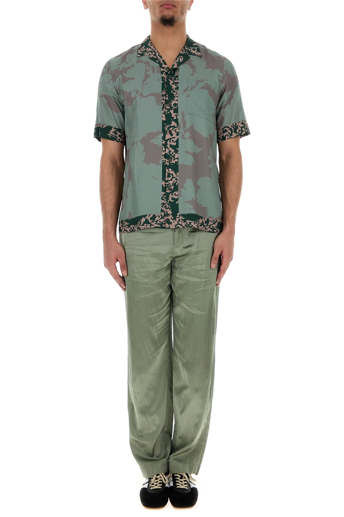 Pant realized in viscose and cotton satin.