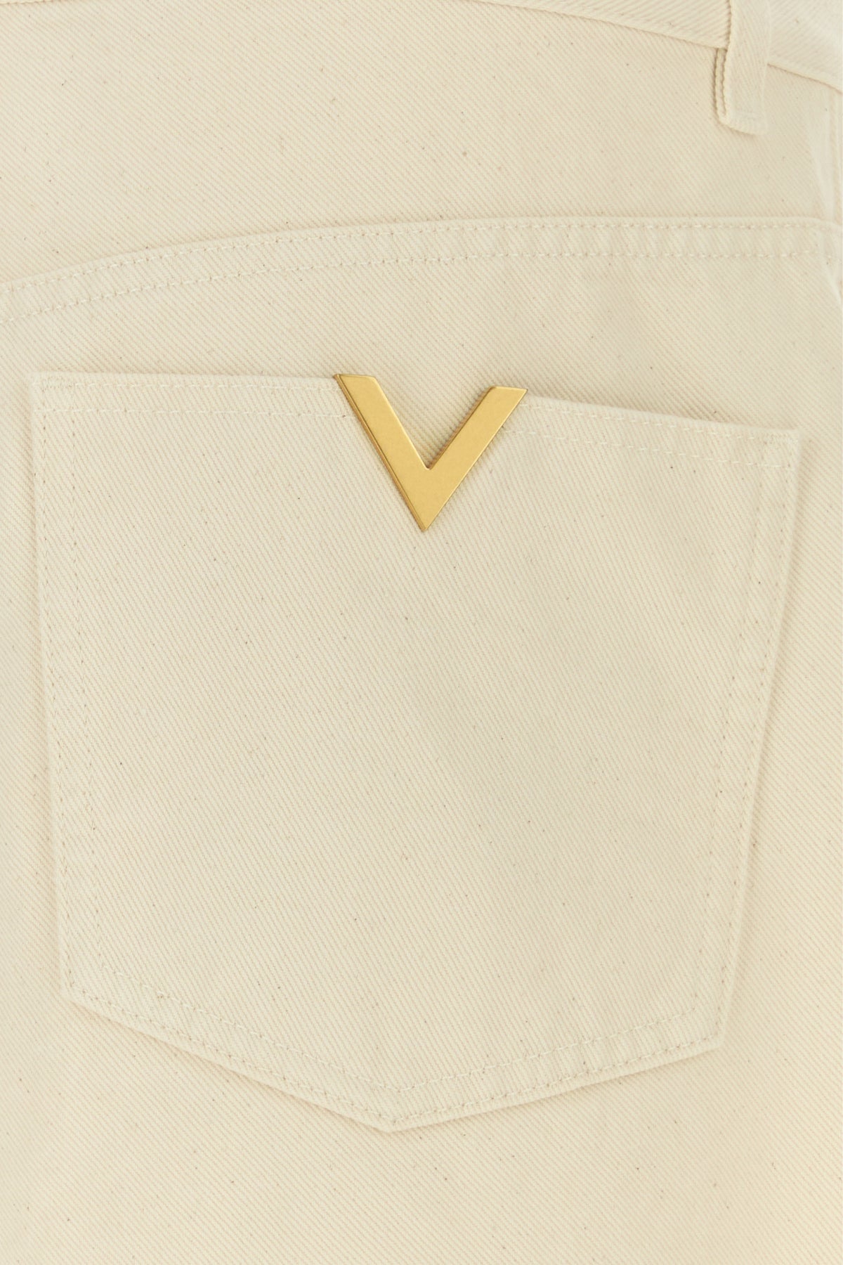 Jeans realized in pure cotton denim enriched by V metal detail at the back.