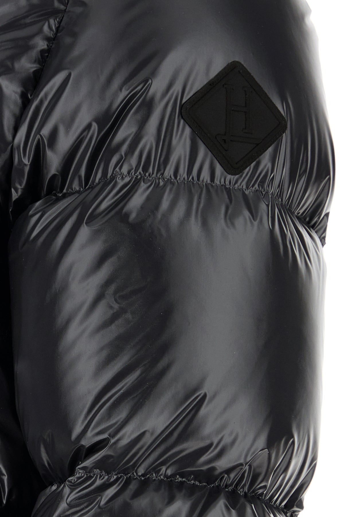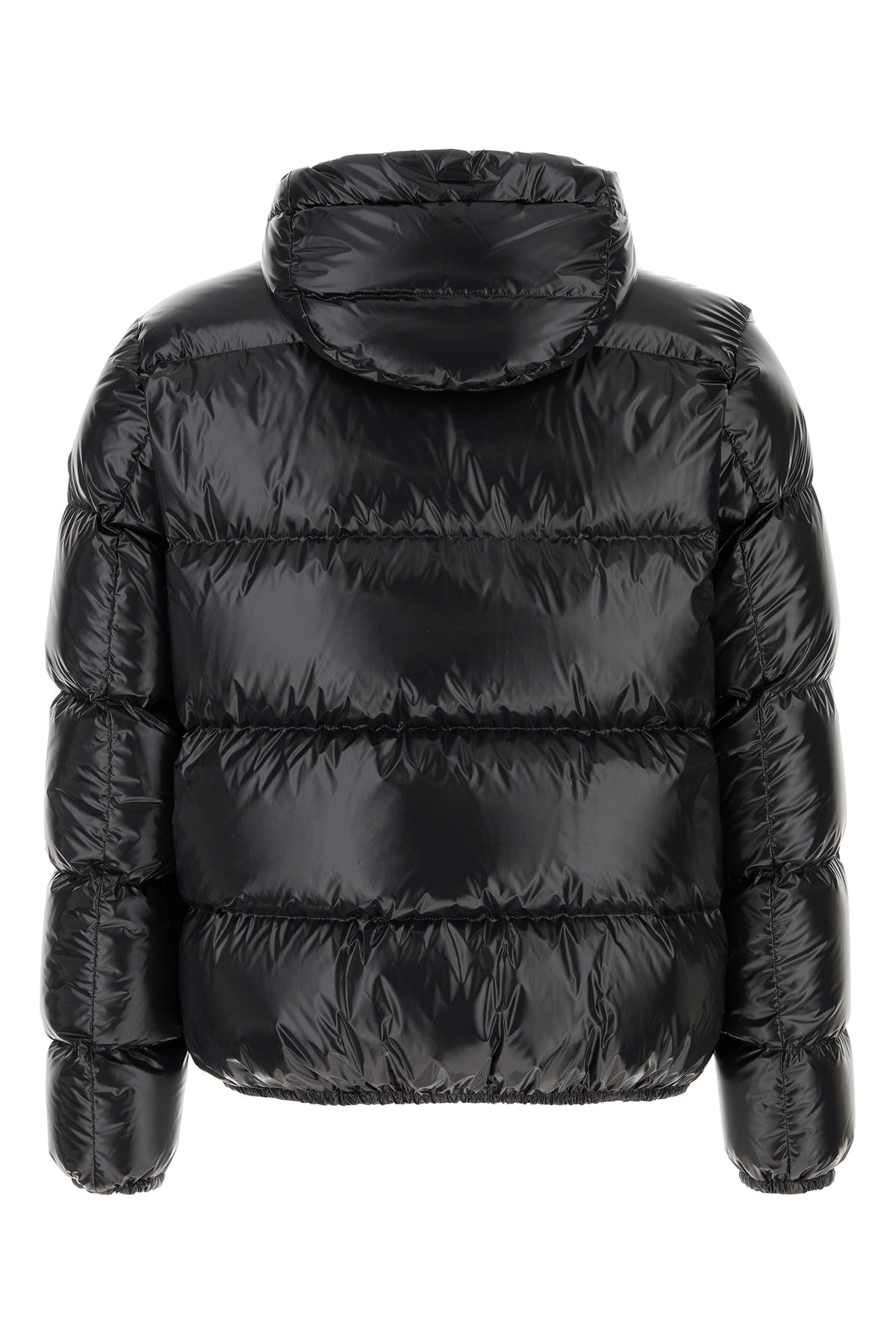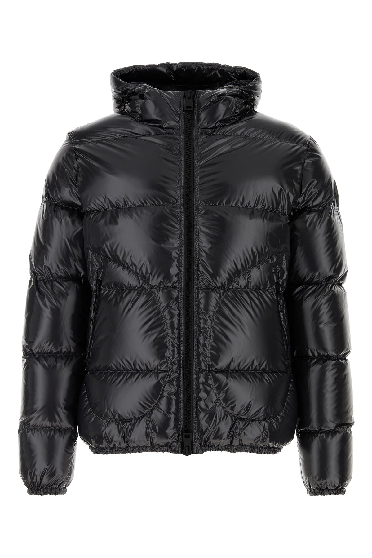 Down jacket realized in quilted nylon enriched by tonal logoed label on the sleeve.
