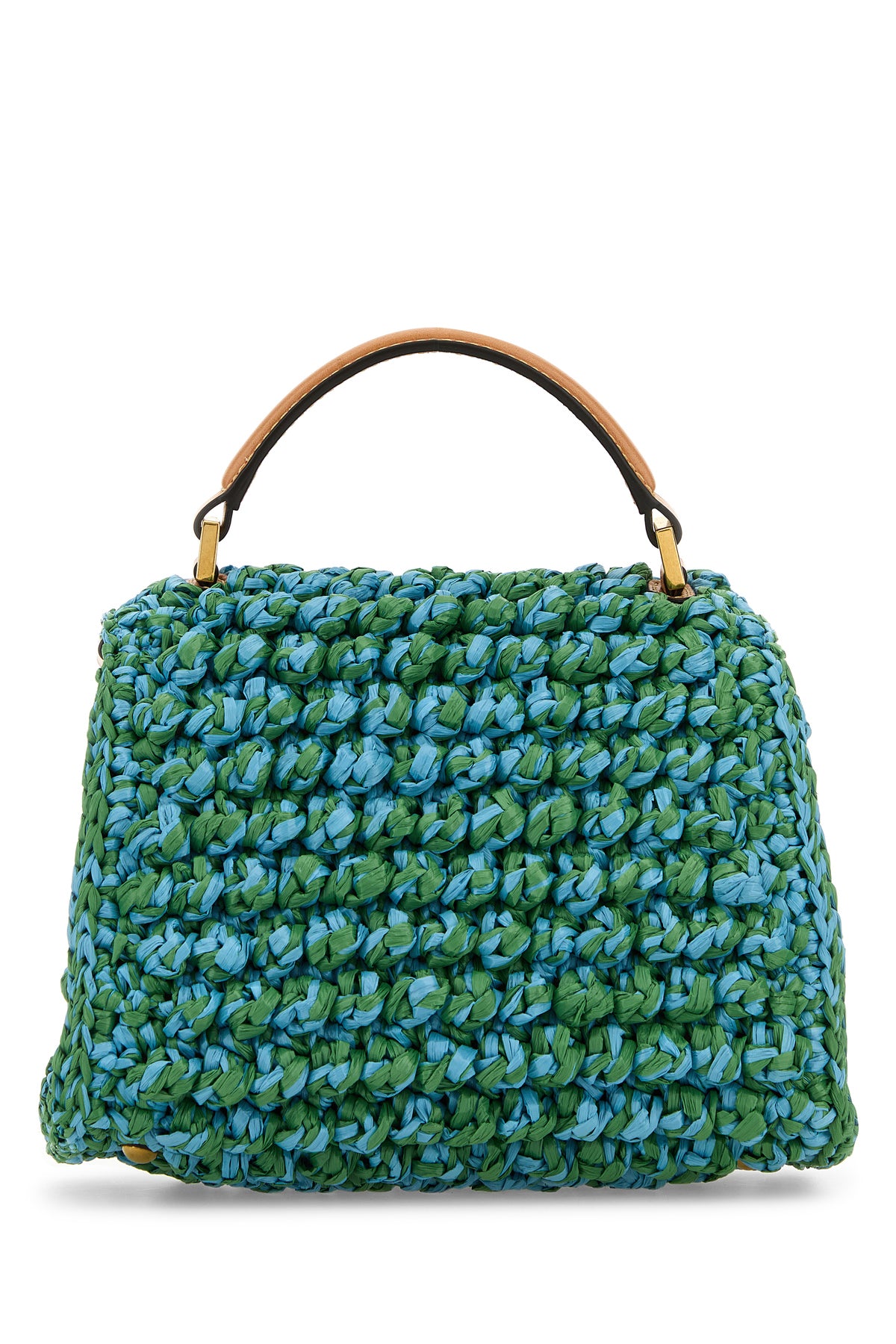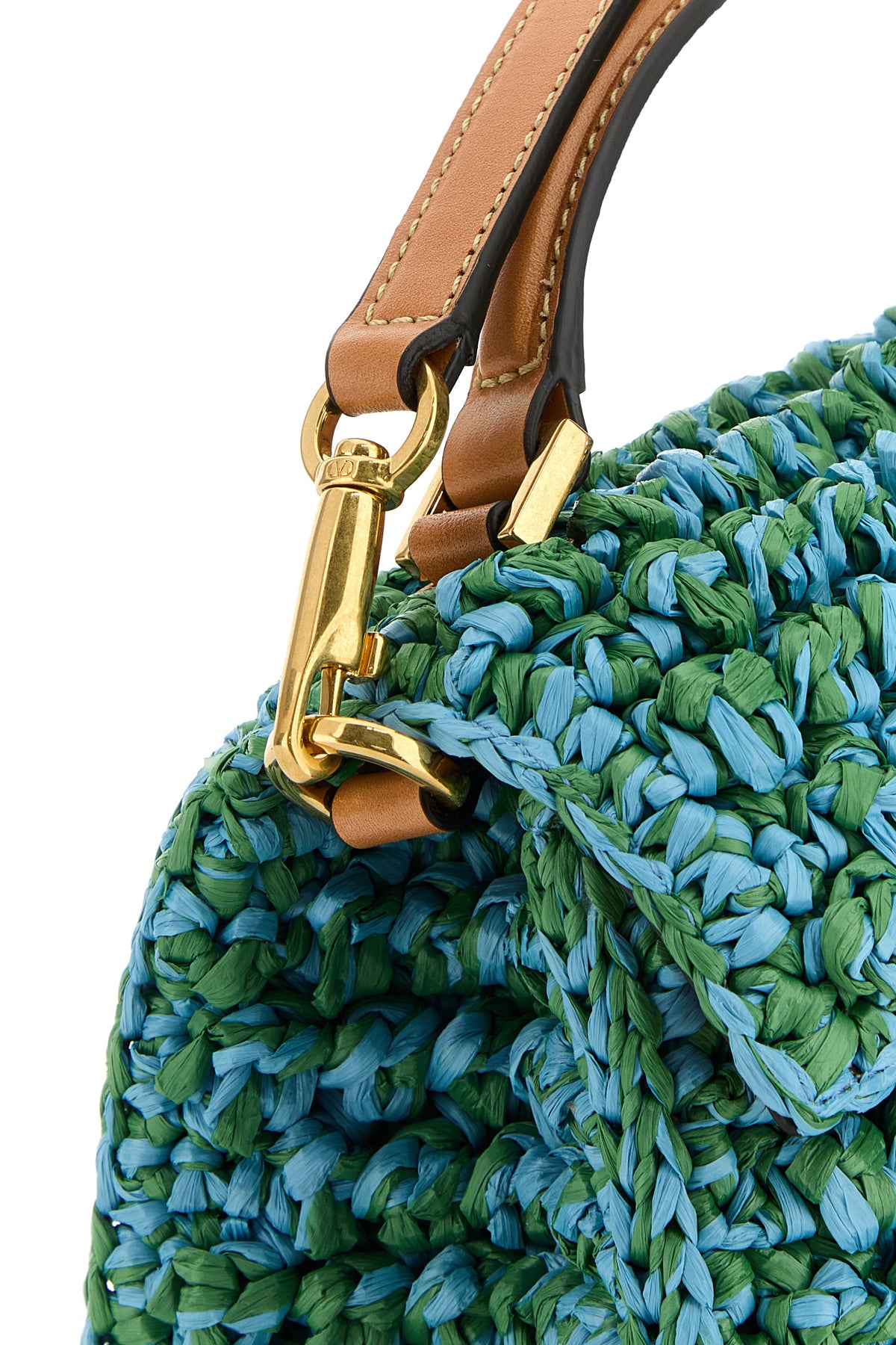 Handbag realized in raffia enriched by VLogo Signature metal detail at the front.